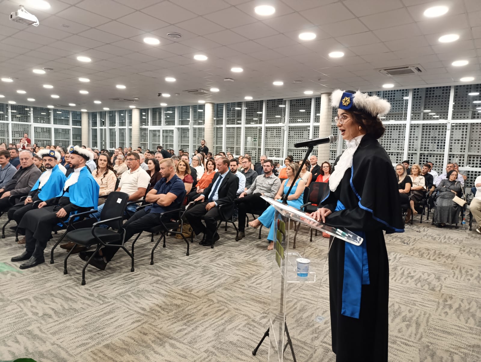 A Diretora Márcia em seu discurso agradeceu ao Sicredi pela cedência do espaço e destacou que a formatura é um marco significativo não apenas na trajetória dos graduandos, mas também para toda a instituição, que se dedica a formar profissionais qualificados e comprometidos com o desenvolvimento do agronegócio e a sustentabilidade, sempre em busca de melhorar a sociedade em que estão inseridos. “A educação é um pilar fundamental para o progresso da sociedade, e é uma honra para nós termos contribuído para a formação de indivíduos que sem dúvida, farão a diferença em suas áreas de atuação”.