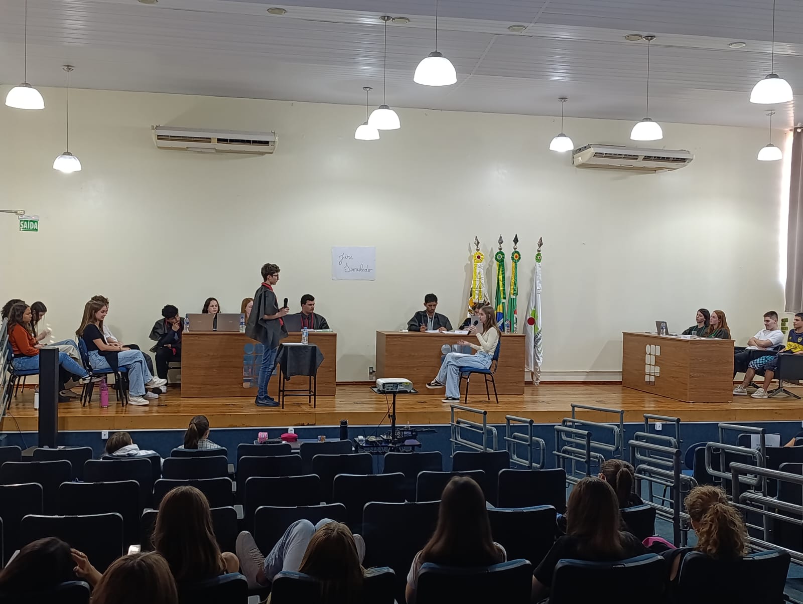Os estudantes do 3º ano do curso técnico em Administração integrado ao ensino médio do IFFar – Campus Santo Augusto realizaram uma atividade de Júri Simulado, sob a orientação do professor Gabriel Maçalai. A proposta integrou os conteúdos da disciplina de Direito e teve como foco a aplicação prática dos conhecimentos sobre a relação entre direito e moral, promovendo reflexões sobre a defesa de direitos e a atuação da justiça diante de dilemas éticos.