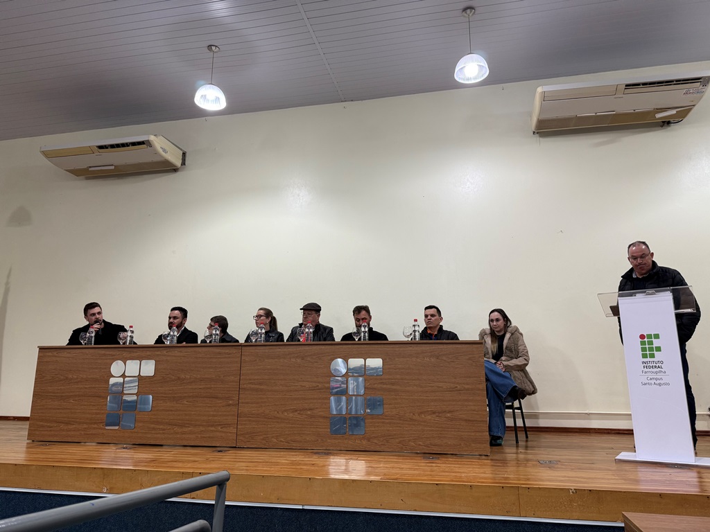 O auditório do IFFar – Campus Santo Augusto foi sede na noite de ontem, 11 de agosto de da aula inaugural do Curso de Formação de Desenhista Mecânico, realizado em parceria com a Prefeitura Municipal, Câmara de Vereadores, ACISA, Botier, LH Equipamentos, SKA e IFFar.