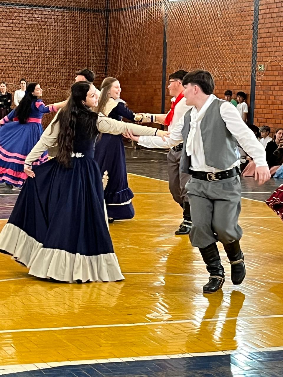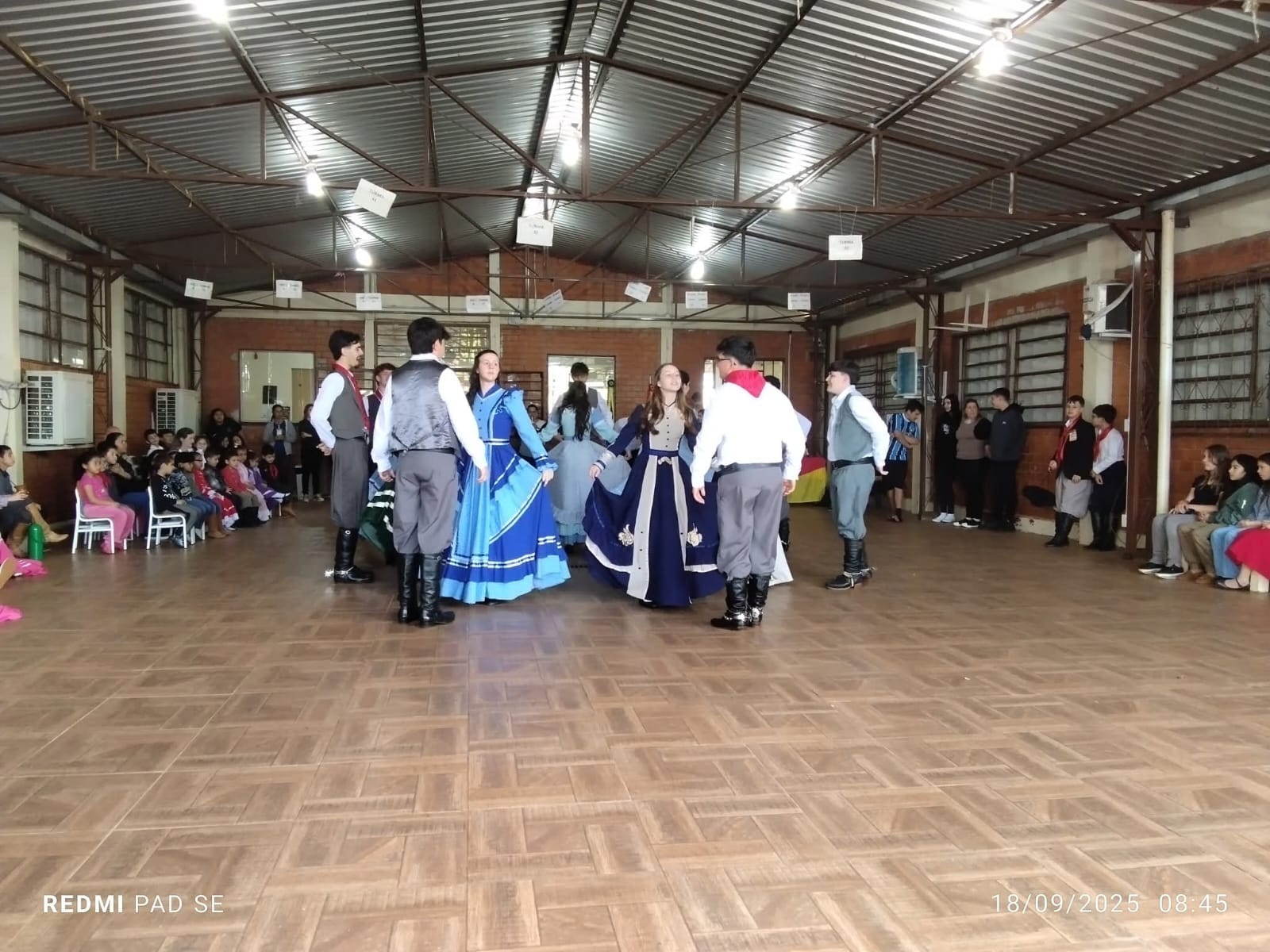 A Invernada Artística do DTG Sinuelo Farroupilha, por meio do projeto de extensão “Tradição em Movimento”, realizou apresentações no IFFar – Campus Santo Augusto e em escolas de Santo Augusto e São Valério do Sul durante a Semana Farroupilha.