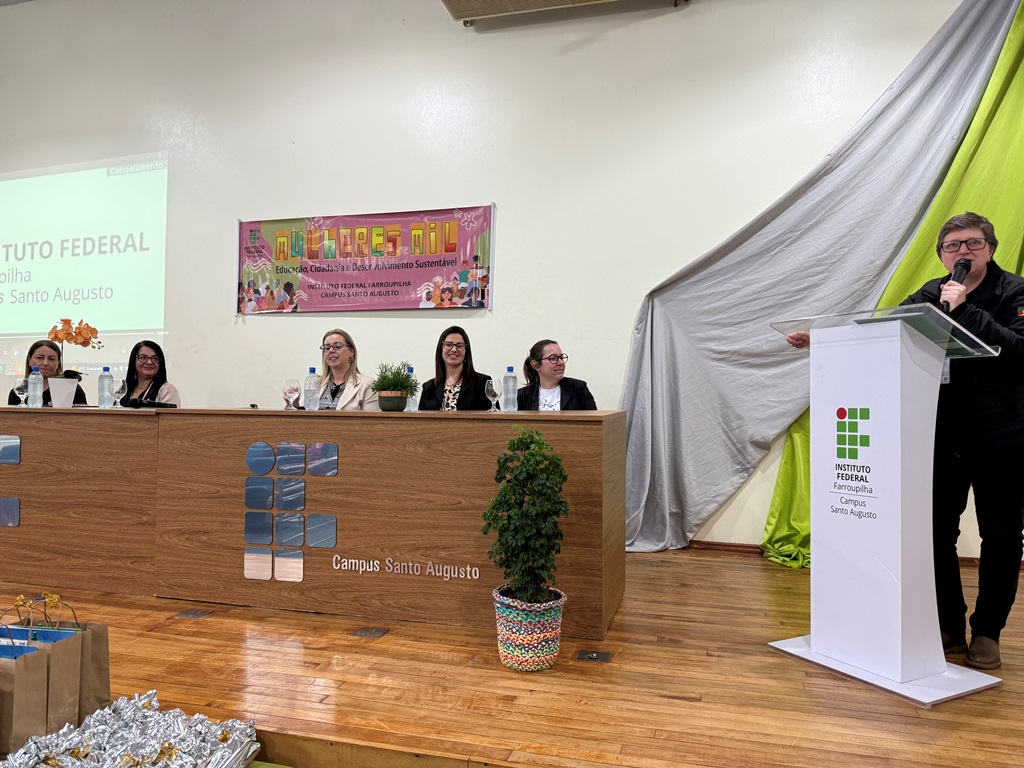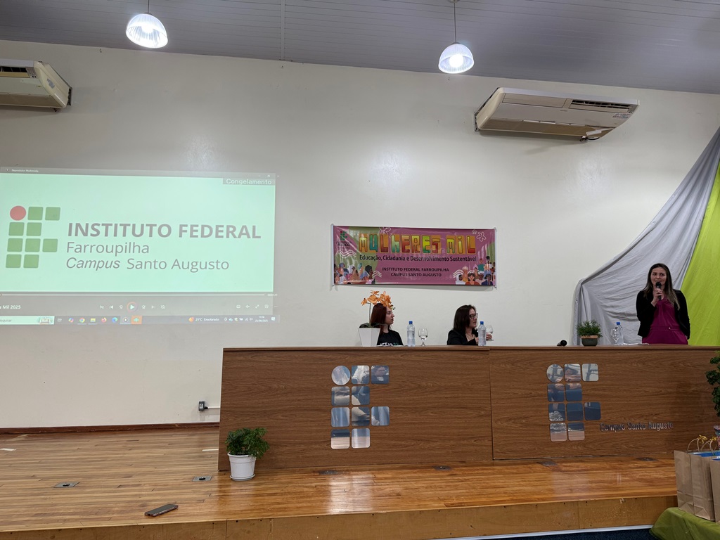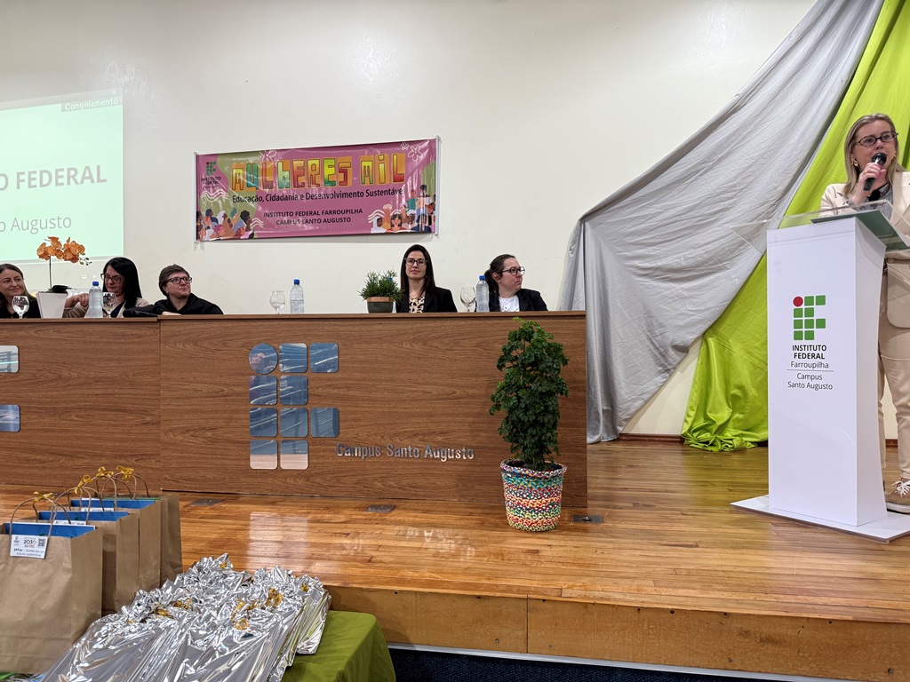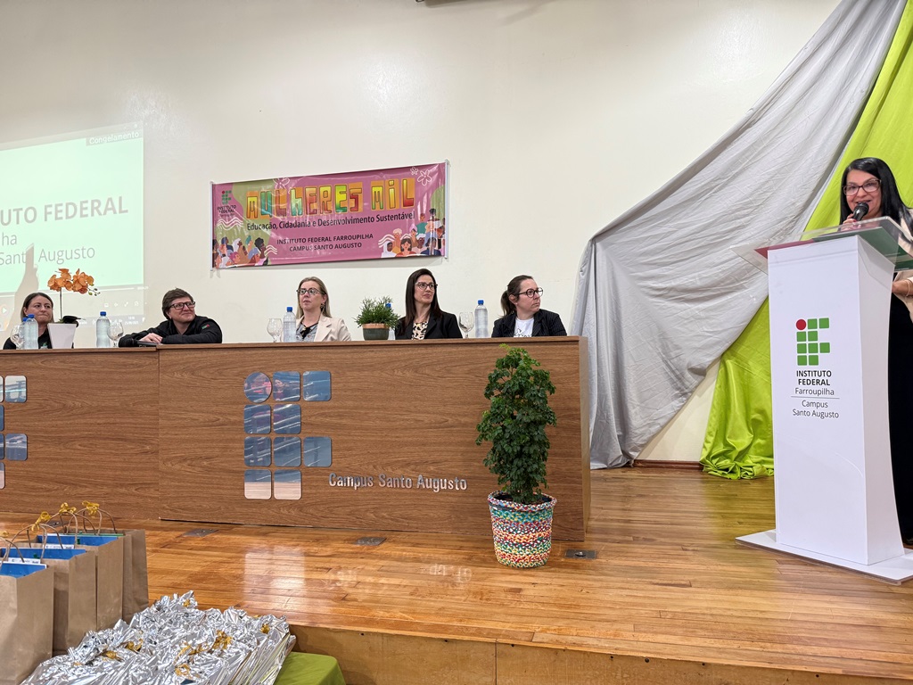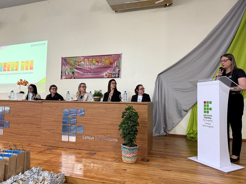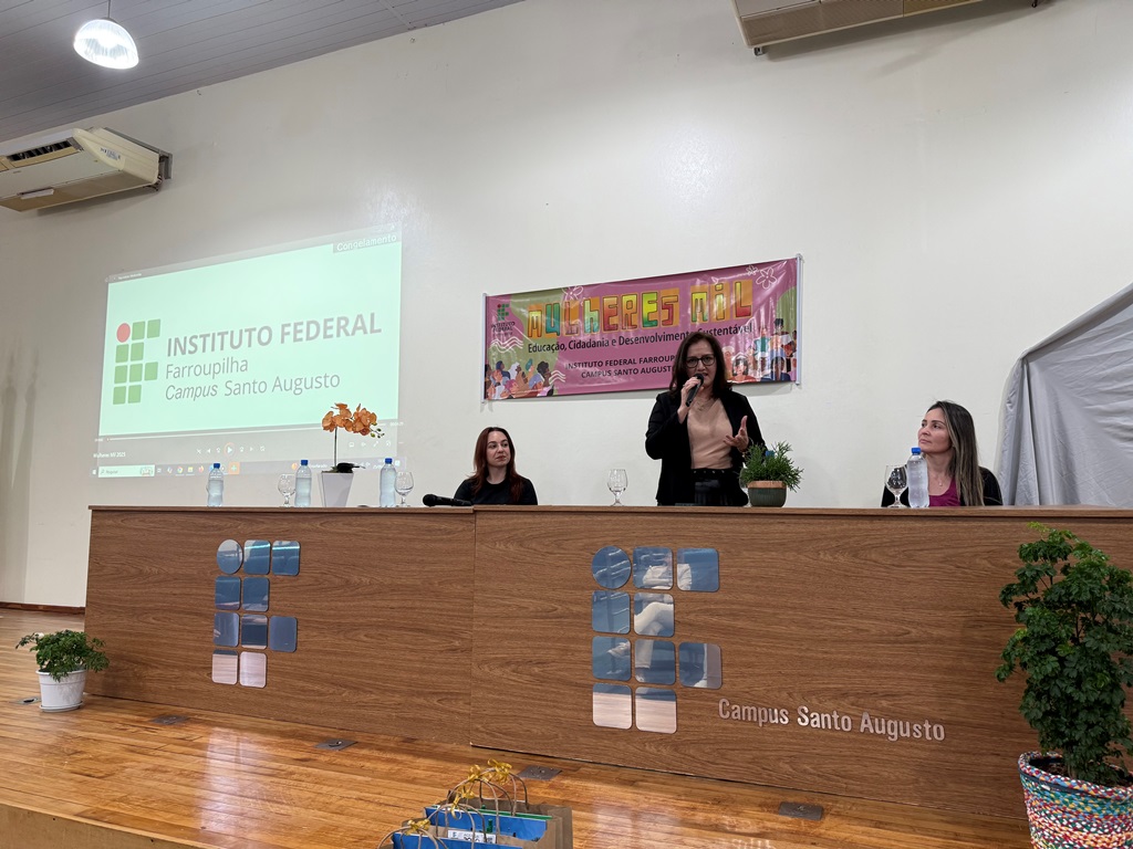 Após as falas das autoridades presentes, foi realizada uma Roda de Conversa com a professora Arminda Inês Strücker; a egressa do curso de Tecnologia em Alimentos e professora do curso de masseira, Iliane Toledo, e a servidora do IFFar – Campus Santo Augusto, Gabriela Felden Sheuermann. Na ocasião, as convidadas apresentaram um relato sobre suas histórias de vida e suas experiências pessoais de superação.