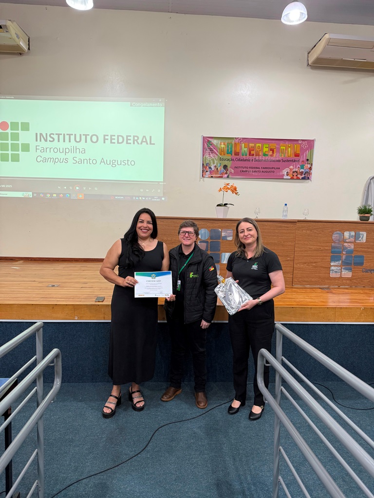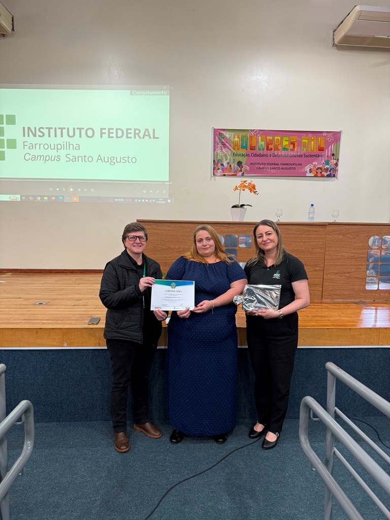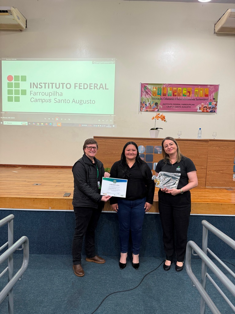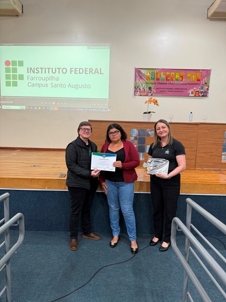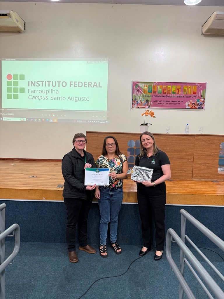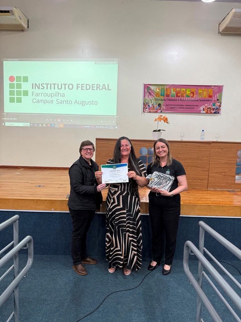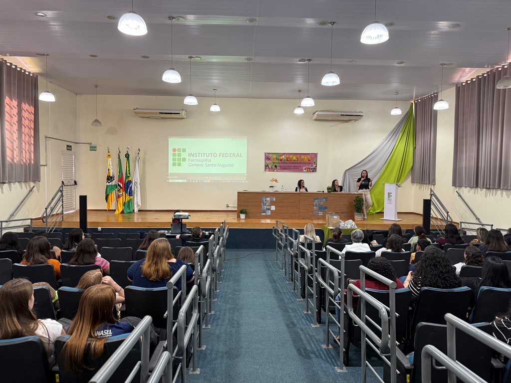 Após as falas das autoridades presentes, foi realizada uma Roda de Conversa com a professora Arminda Inês Strücker; a egressa do curso de Tecnologia em Alimentos e professora do curso de masseira, Iliane Toledo, e a servidora do IFFar – Campus Santo Augusto, Gabriela Felden Sheuermann. Na ocasião, as convidadas apresentaram um relato sobre suas histórias de vida e suas experiências pessoais de superação.