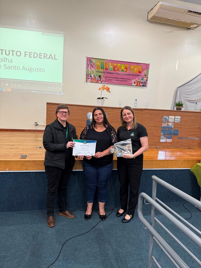 O evento contou com a presença da Diretora Geral do Campus Santo Augusto, Márcia Fink; da Prefeita de Santo Augusto, Lilian Fontoura Depiere; da coordenadora de Habitação e Assistência Social da Secretária Municipal de Habitação e Assistência Social de Santo Augusto, Maria Izabel Lorenzon; das vereadoras, Ivanete Batista e Raquel Ceolin e da Coordenadora do Programa Mulheres Mil no Campus Santo Augusto, Denise Rocha, bem como, as alunas concluintes e familiares.