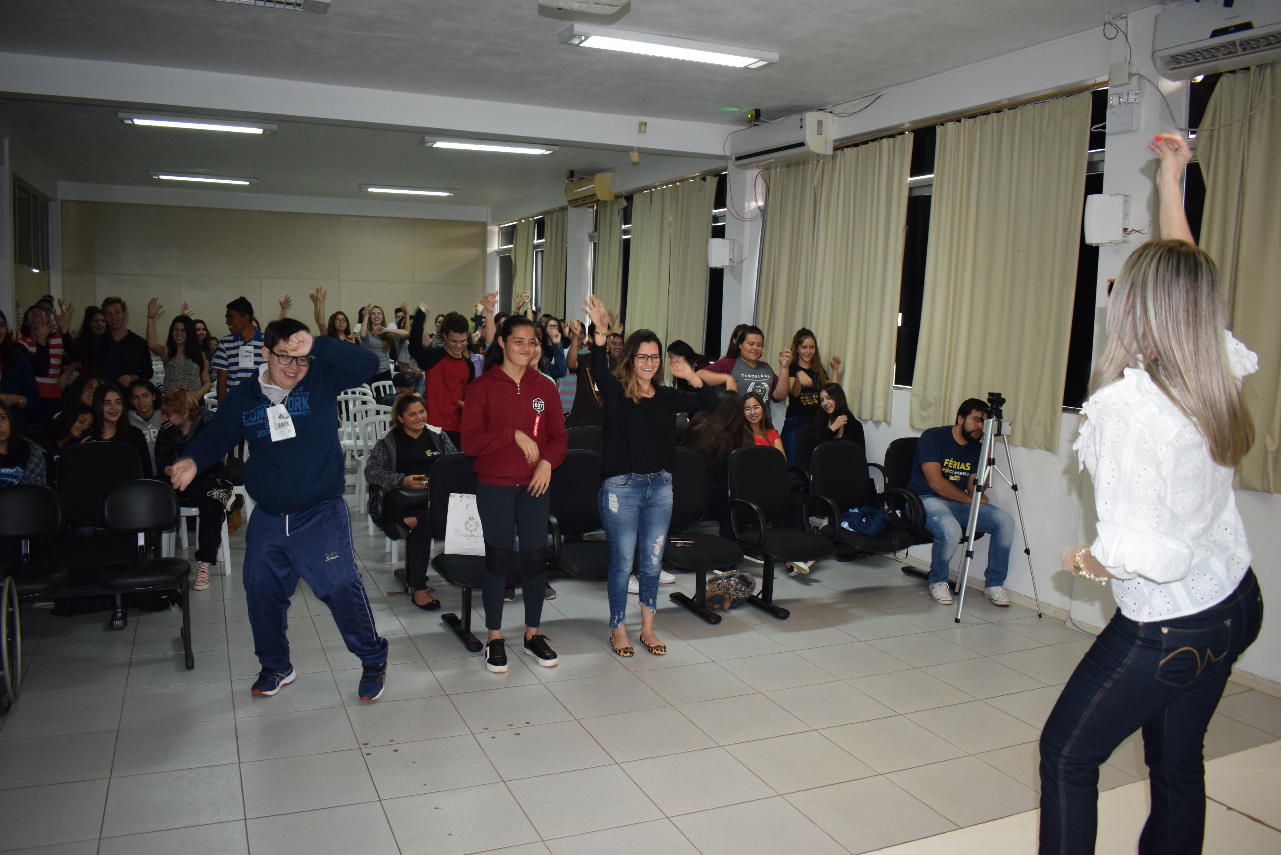A palestrante incentivou os jovens a meditar quando o medo chega e toma conta. Sentar e ouvir a resposta do corpo, faz o medo diminuir, disse Aline. A partir de quando o corpo age melhor, respira melhor, age-se também melhor.