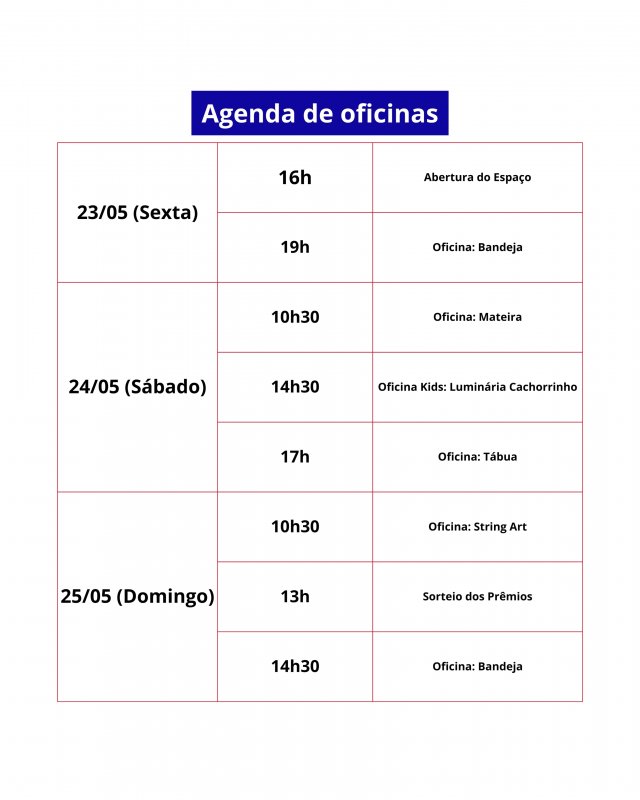 Confira as oficinas disponíveis e faça a sua inscrição em: indumoveis.com.br espaco-mao-na-massa-indumoveis
