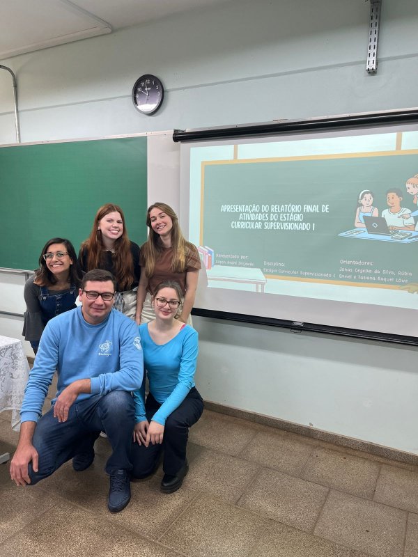 Na manhã de 09/07/2025 ocorreu o Seminário Socializador dos Estágios Curriculares Supervisonados I e III, realizado durante este semestre por licenciandos das Turmas BIOT8 e BIOT9 do Curso de Licenciatura em Ciências Biológicas. O Seminário constituiu-se em um momento de partilhas das reflexões durante os percursos dos licenciandos no ensino de Ciências e Biologia em escolas de Educação Básica da região. O Estágio Curricular Supervisionado I é ministrado pelo professor Jonas Cegelka da Silva, pelas professoras Rúbia Emmel e Tatiana Raquel Lowe; sendo que o Estágio Curricular Supervisionado III é ministrado pelas professoras Luciane Carvalho Oleques e Rúbia Emmel.