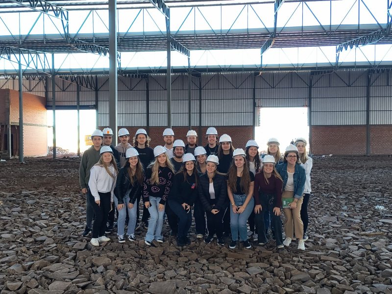 Também foram explorados aspectos técnicos como fixação de chapas metálicas nas fachadas, sistemas de exaustão e ventilação, climatização industrial, treliças metálicas, TQP’s externos e aparentes, calhas, sheds para iluminação natural, docas, subestação e taludes — componentes que fazem parte das especificidades de uma obra industrial desse porte. A visita foi organizada pela professora Neidi Kunkel, responsável pela disciplina de Materiais e Técnicas Construtivas IV, e proporcionou aos alunos uma importante vivência prática para consolidar os conteúdos abordados em sala de aula.