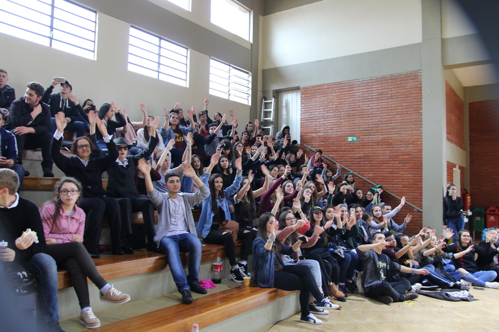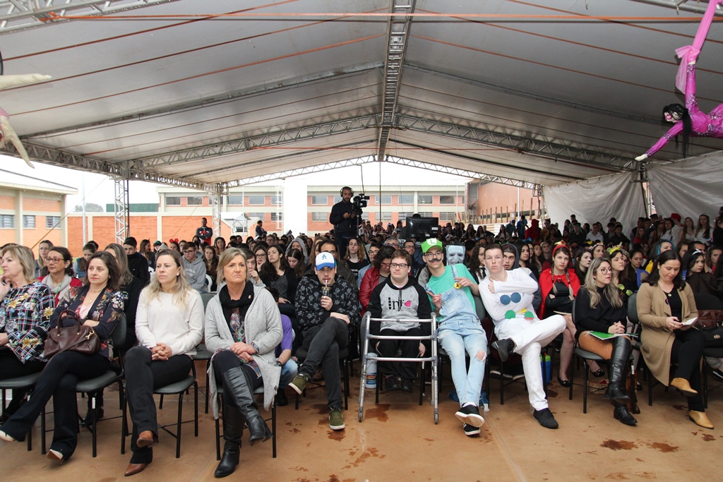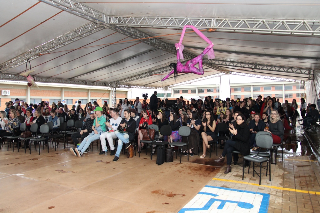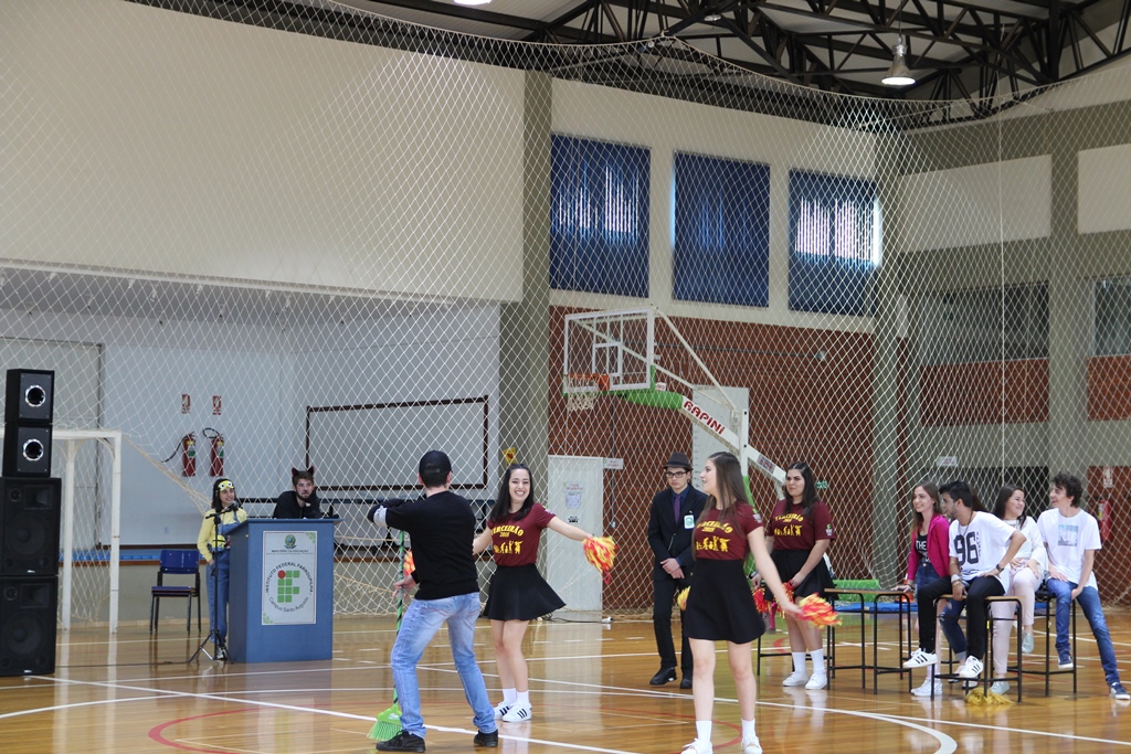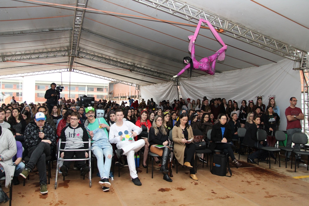 Foto: as delegações dos campi foram recebidas pelos estudantes de Santo Augusto caracterizados como personagens (ou cosplays), os quais também atuaram como guias