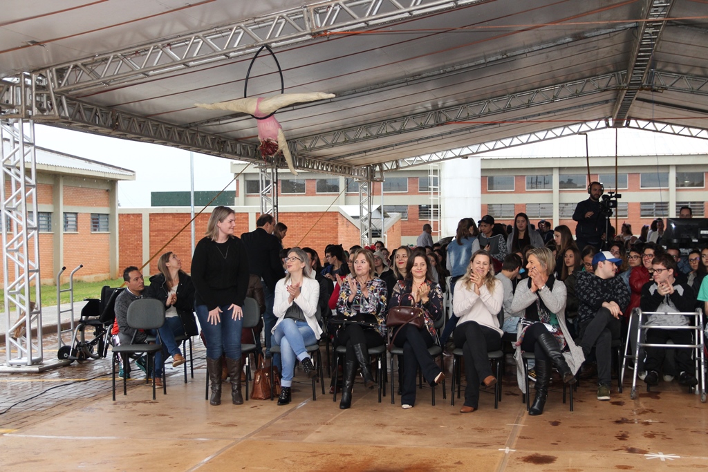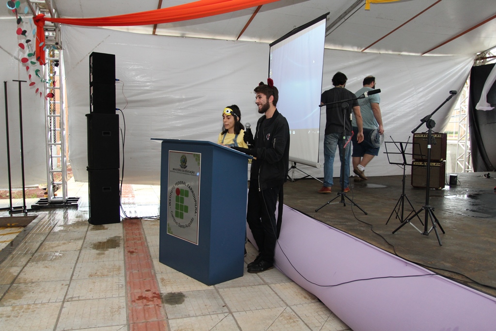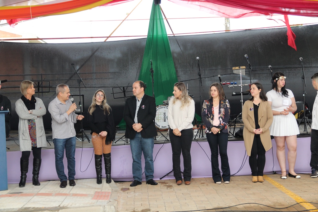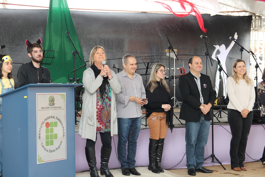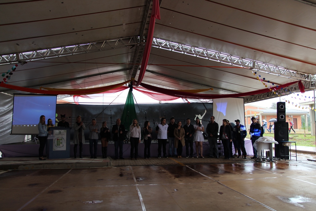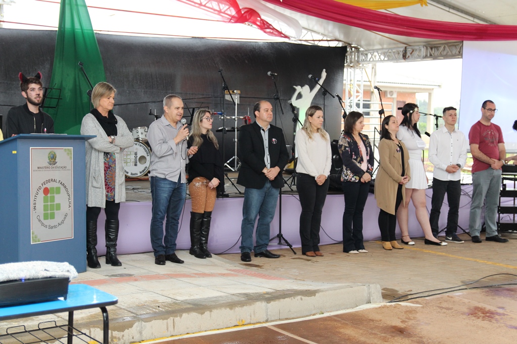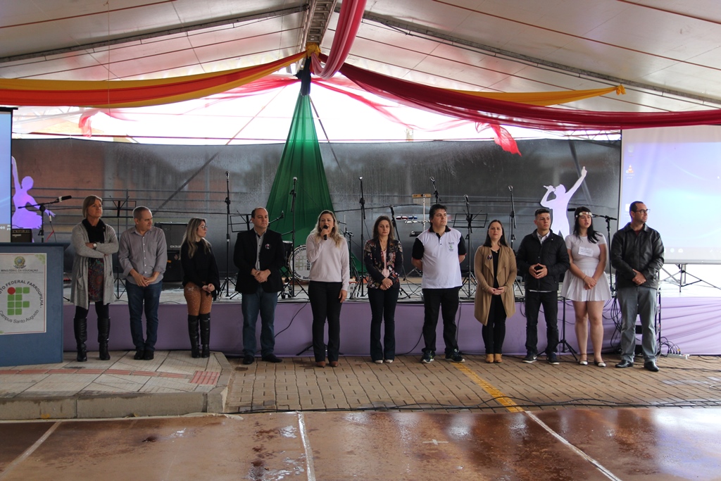 Participaram da solenidade de abertura a Reitora do IFFar, Carla Comerlato Jardim; o Pró-Reitor de Ensino Edison Gonzague Brito da Silva; representando a Pró-Reitoria de Extensão, a Coordenadora de Ações Sociais, Denize Valduga; o Diretor de Assistência Estudantil, Hermes Gilber Uberti; a Diretora Geral do Campus Santo Augusto, Verlaine Denize Brasil Gerlach; o Coordenador de Assistência Estudantil do Campus Santo Augusto, Marcos Cezar Wolmman dos Santos; a presidente do Núcleo de Arte e Cultura da Reitoria, Cynthia Gindri Haygert; a Secretaria de Educação de Santo Augusto, Zaira Rotili, representantes do Grêmio Estudantil e do Diretório Acadêmico.