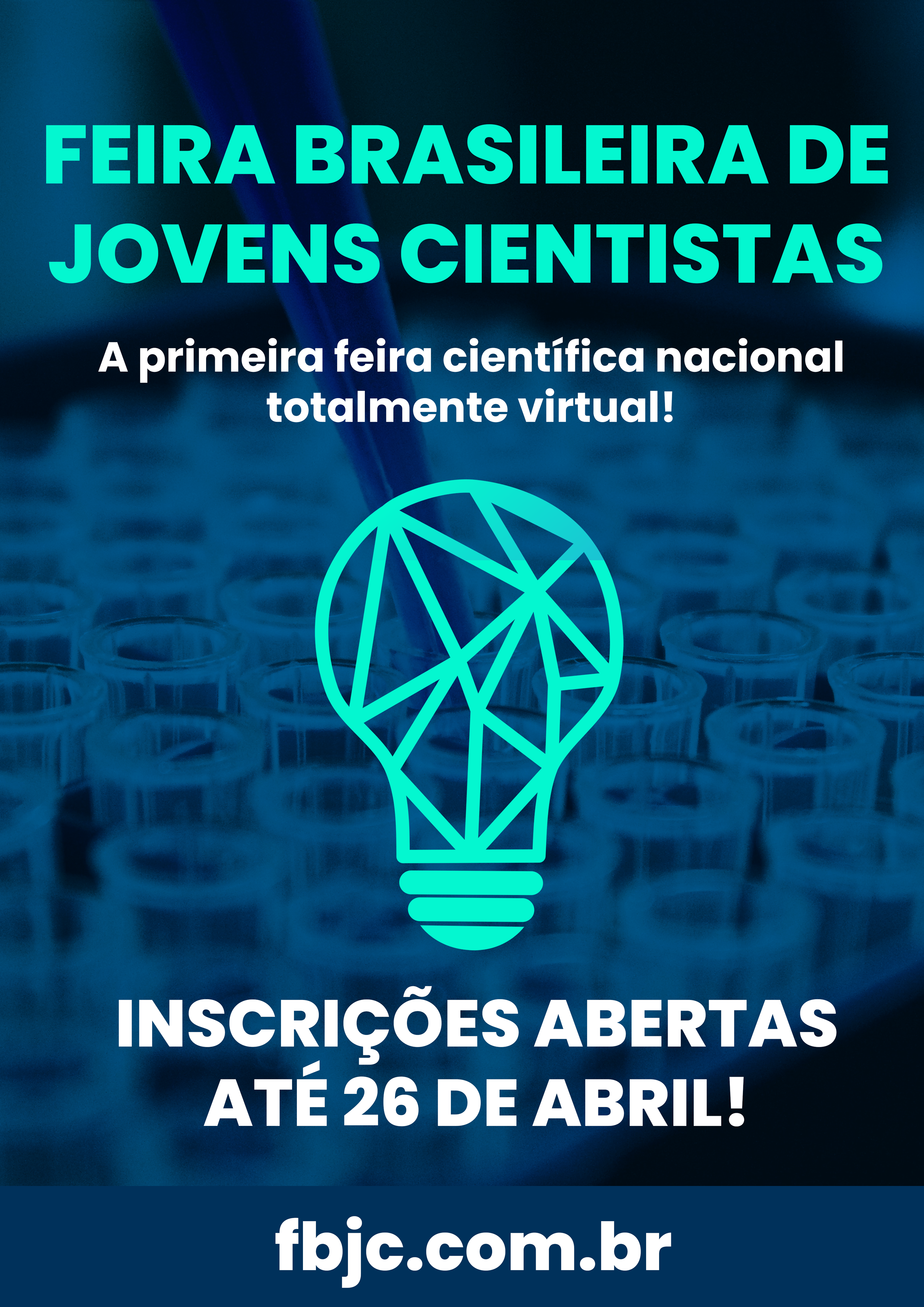 Termina no próximo dia 26 de abril as inscrições para a primeira edição da Feira Brasileira de Jovens Cientistas (FBJC). O evento, que será totalmente virtual, vai ocorrer de 26 a 28 de junho de 2020 e terá palestras, workshops e uma maratona de inovação. Podem participar estudantes brasileiros de Ensino Médio, Técnico de Nível Médio e egressos do Ensino Médio (2019) de escolas públicas e privadas. Para se inscrever e conferir a programação, acesse: fbjc.com.br. As atividades também serão abertas a quem não tiver projetos científicos.