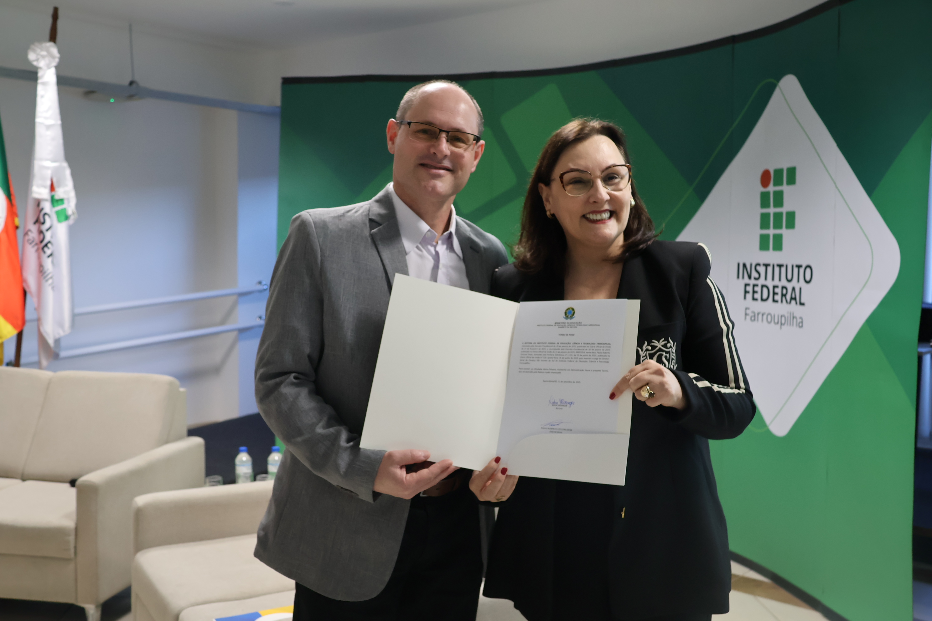 No mês passado, a professora Nídia Heringer foi oficialmente reconduzida ao cargo de reitora do IFFar. A cerimônia teve a participação do ministro da Educação, Camilo Santana, autoridades, imprensa, servidores e cerca de 400 estudantes.
