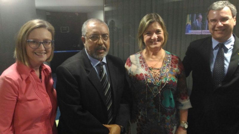 Foto: Da esquerda para a direita, deputada federal Maria do Rosário, senador Paulo Paim, reitora do IFFar Carla Jardim e reitor do IFSul Flávio Nunes