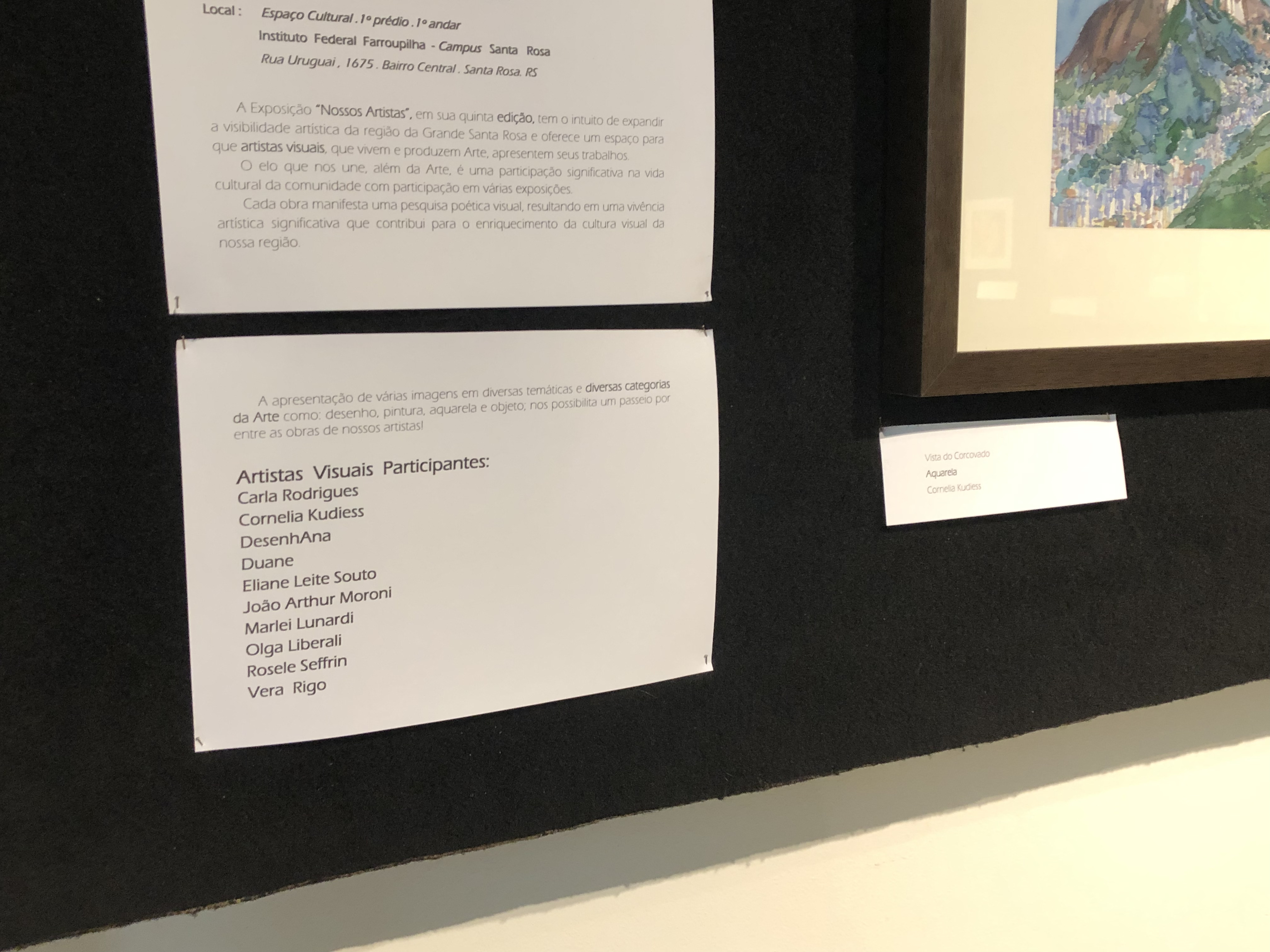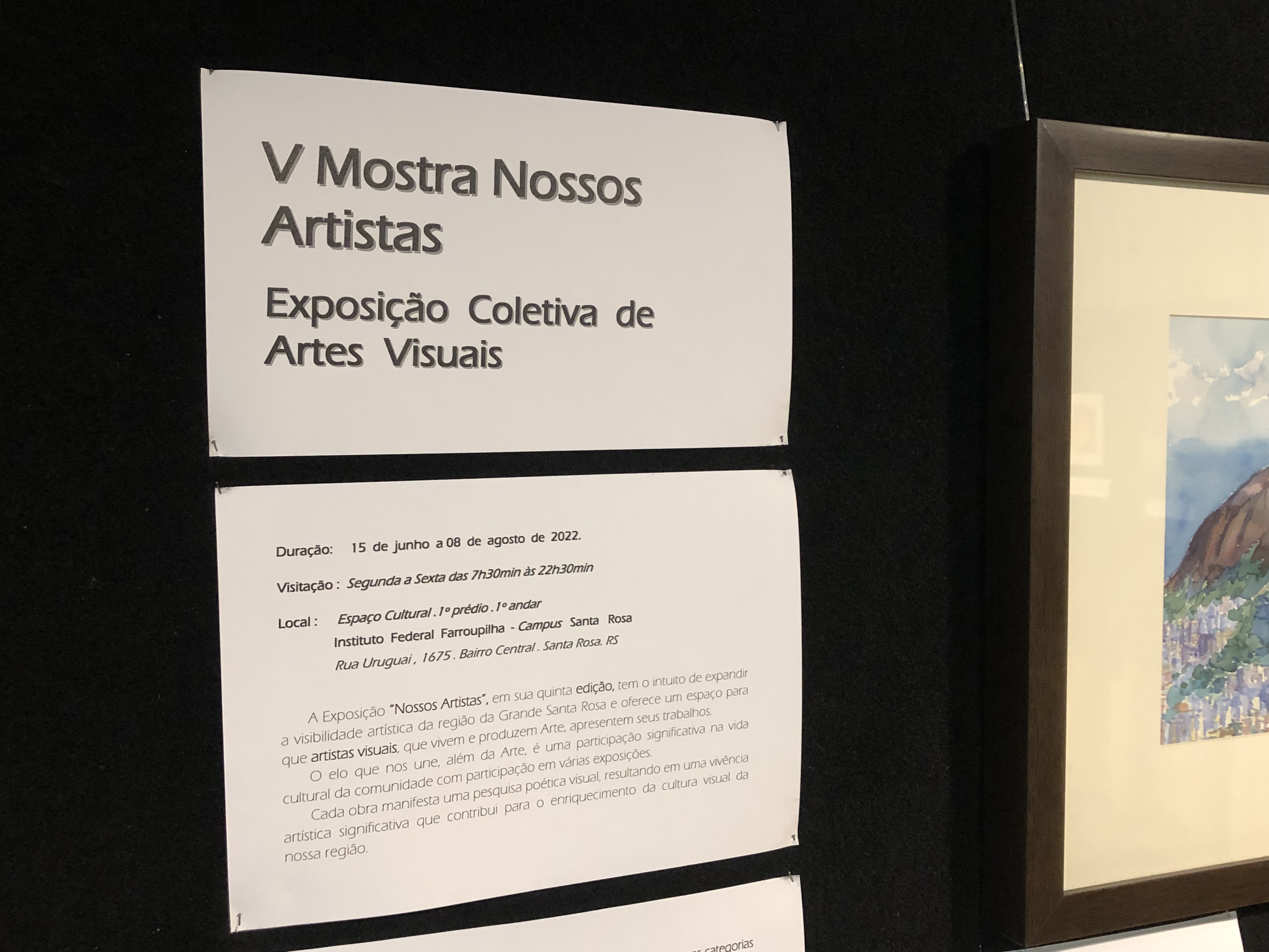 A Exposição “Nossos Artistas”, em sua quinta edição, tem o intuito de expandir a visibilidade artística da região da Grande Santa Rosa e oferece um espaço para que artistas visuais, que vivem e produzem Arte, apresentem seus trabalhos.