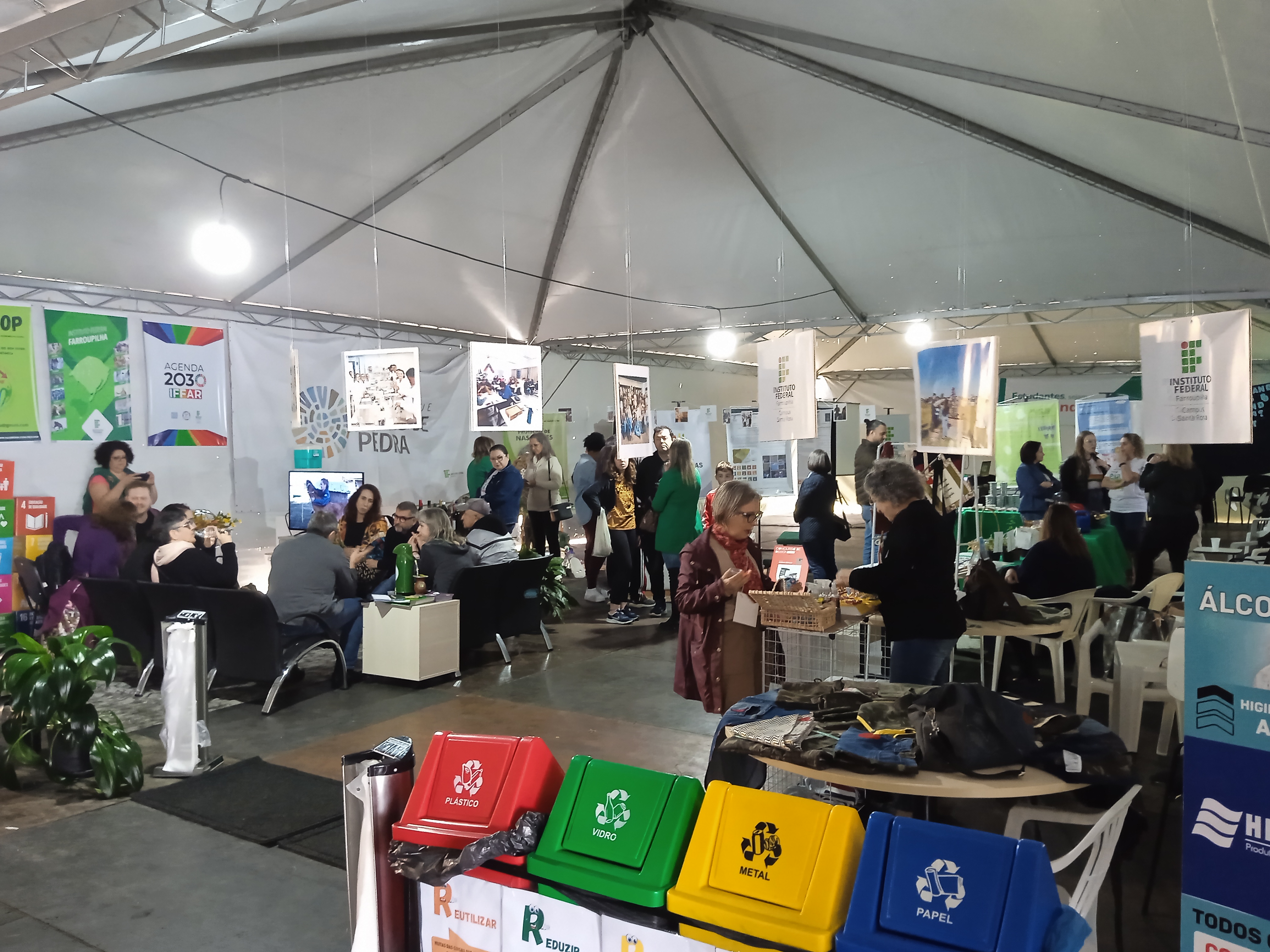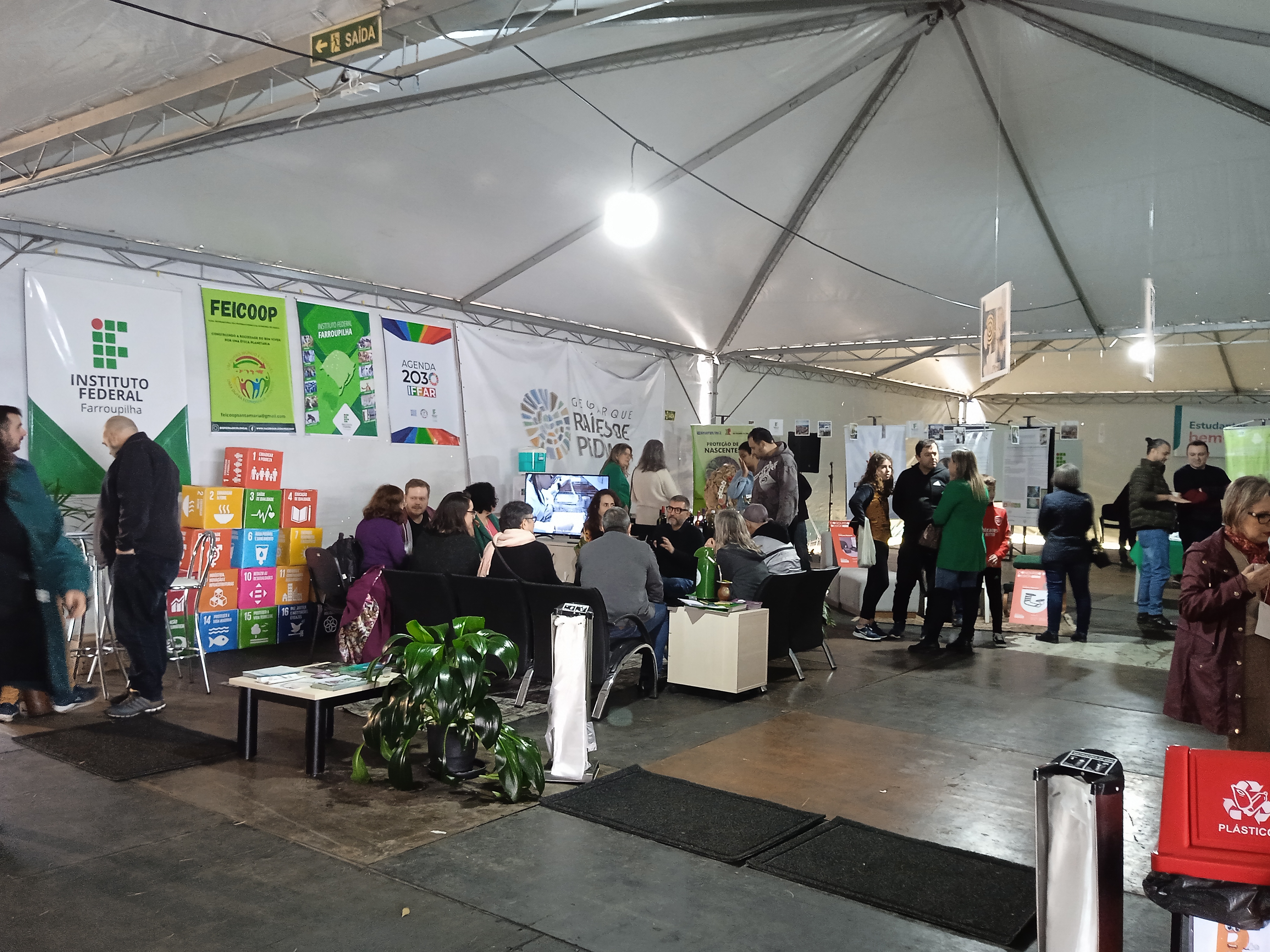 Foto: estandes do IFFar montados na Feira Internacional da Economia Solidária, em Santa Maria
