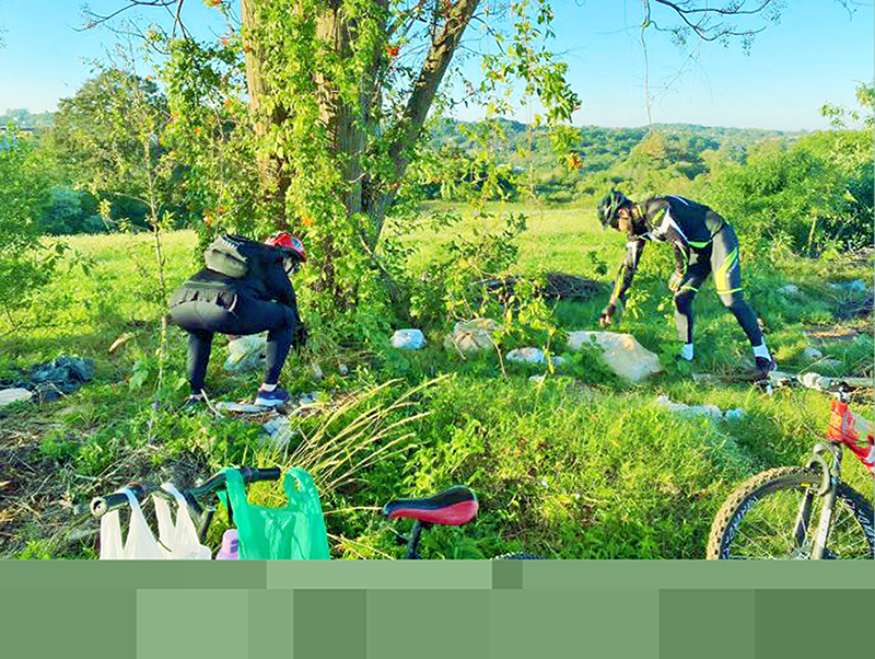 Foto: participantes do projeto Pedal Ambiental recolhem resíduos em Santa Rosa