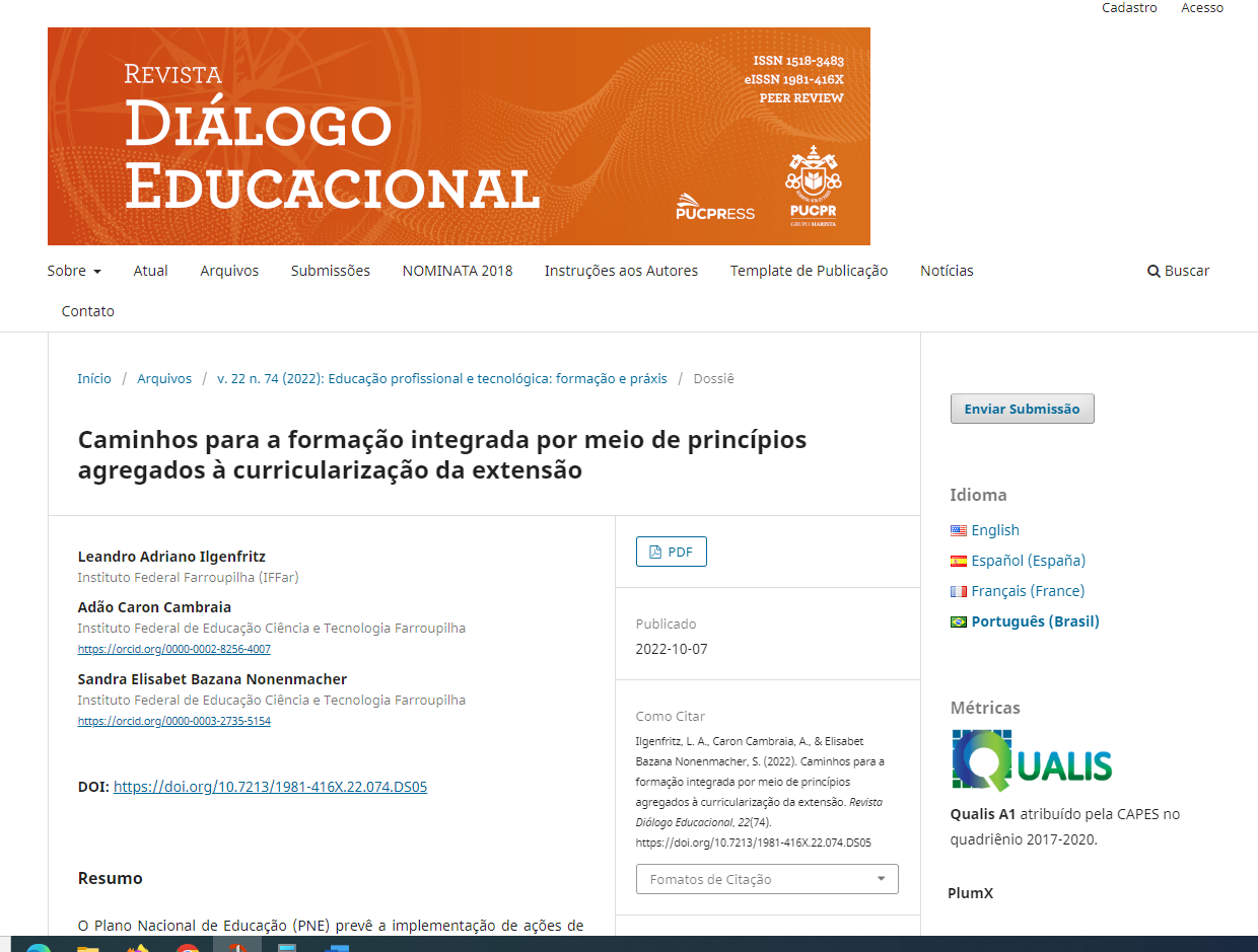 Imagem: projeto de origem ao artigo publicado no periódico Diálogo Educacional, da PUC-PR