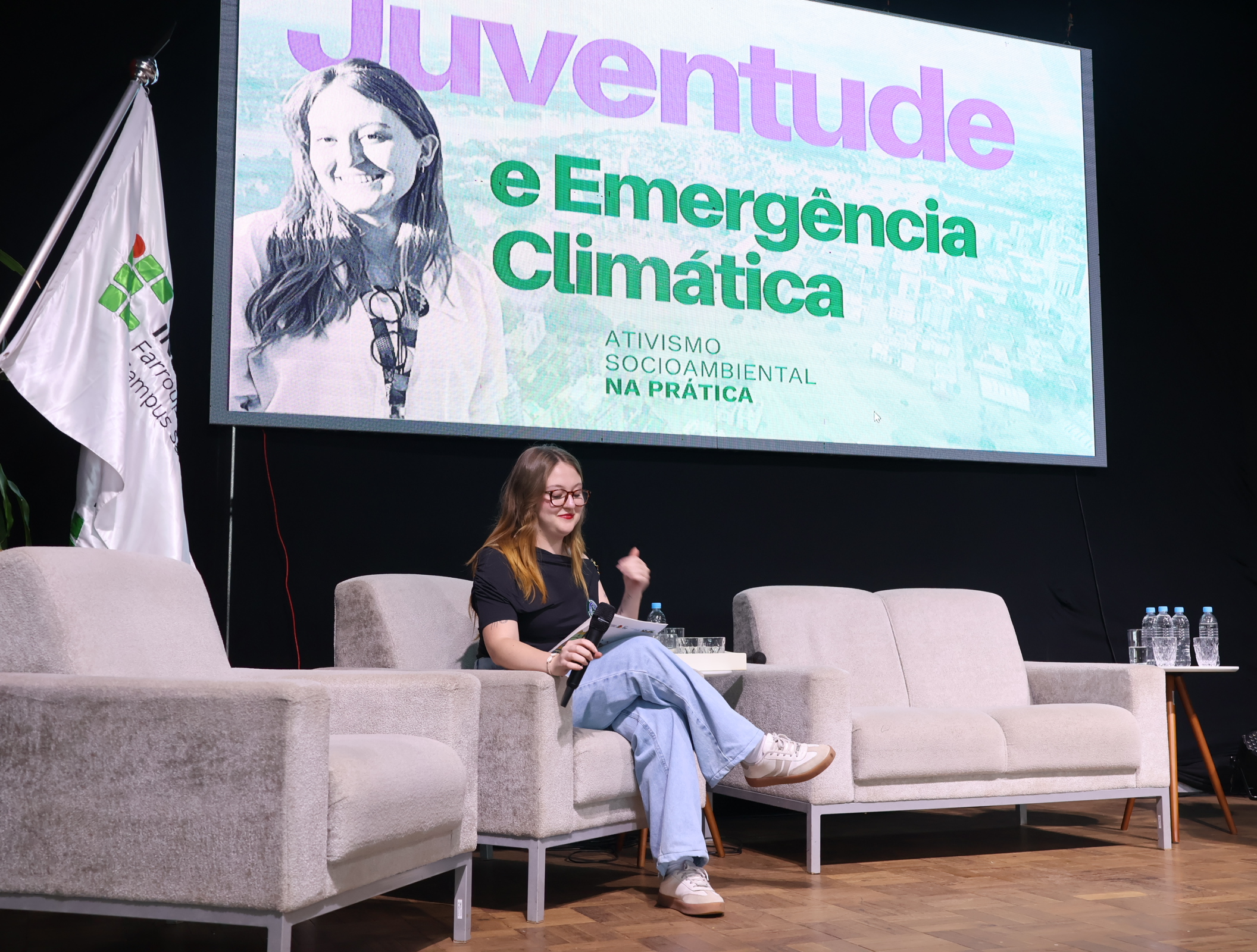 A palestra de abertura foi ministrada por Sophia Maia, estudante do ensino médio e pesquisadora no Laboratório de Paleobotânica e Evolução de Biomas (LPEB/Univates), que abordou a relação entre juventude, emergência climática e ativismo socioambiental.