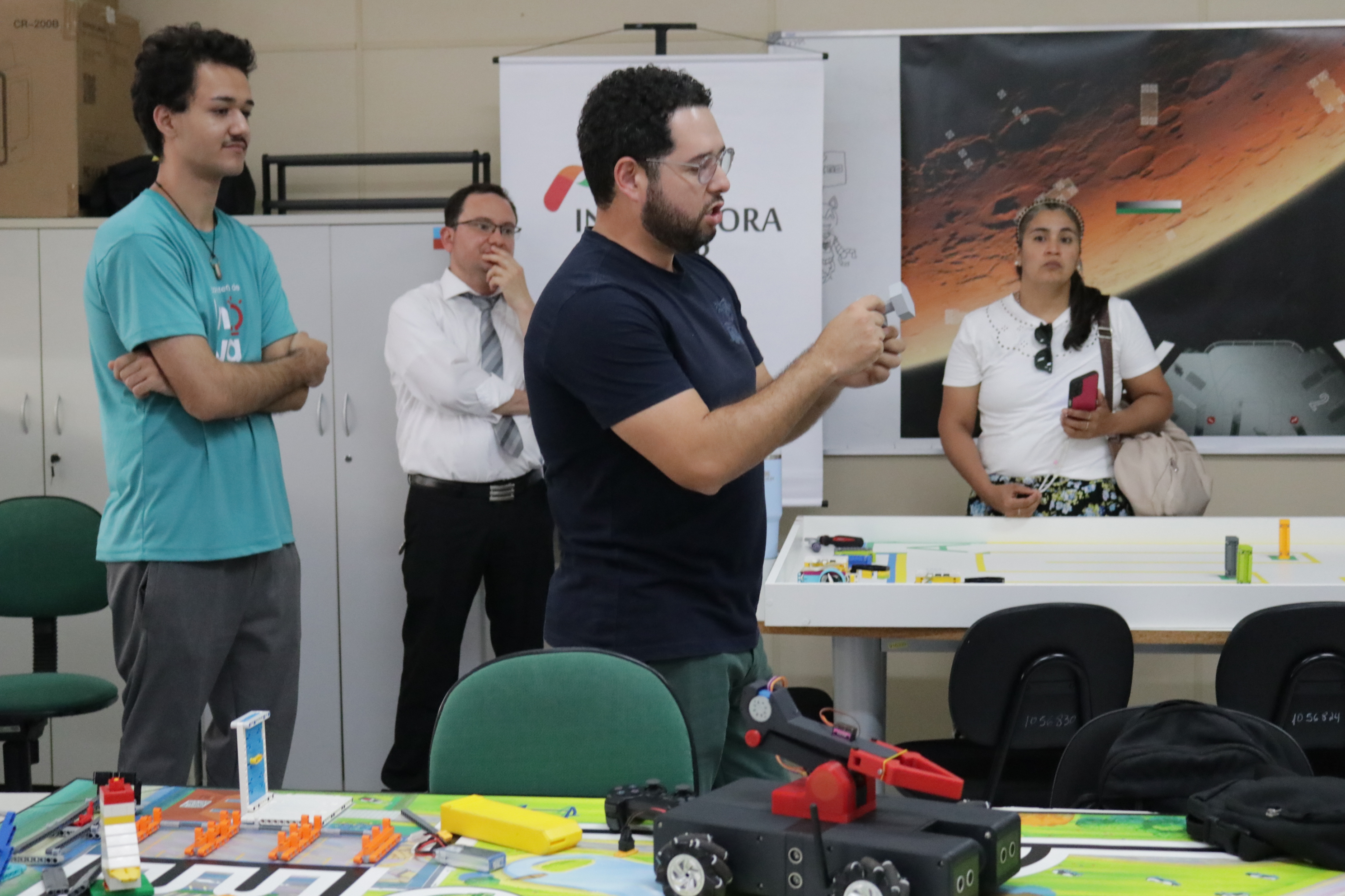 A recepção ocorreu no Lab IF Maker, onde o coordenador do laboratório, Prof. Dr. Bruno Siqueira, acompanhado pelos alunos bolsistas Fernando Ponce Santini e Mariana Dalosto, apresentou os projetos desenvolvidos no espaço, as tecnologias disponíveis e as diversas possibilidades de criação que o ambiente oferece. Os visitantes puderam conhecer impressoras 3D, equipamentos de prototipagem, além de soluções inovadoras e iniciativas conduzidas pelo laboratório.