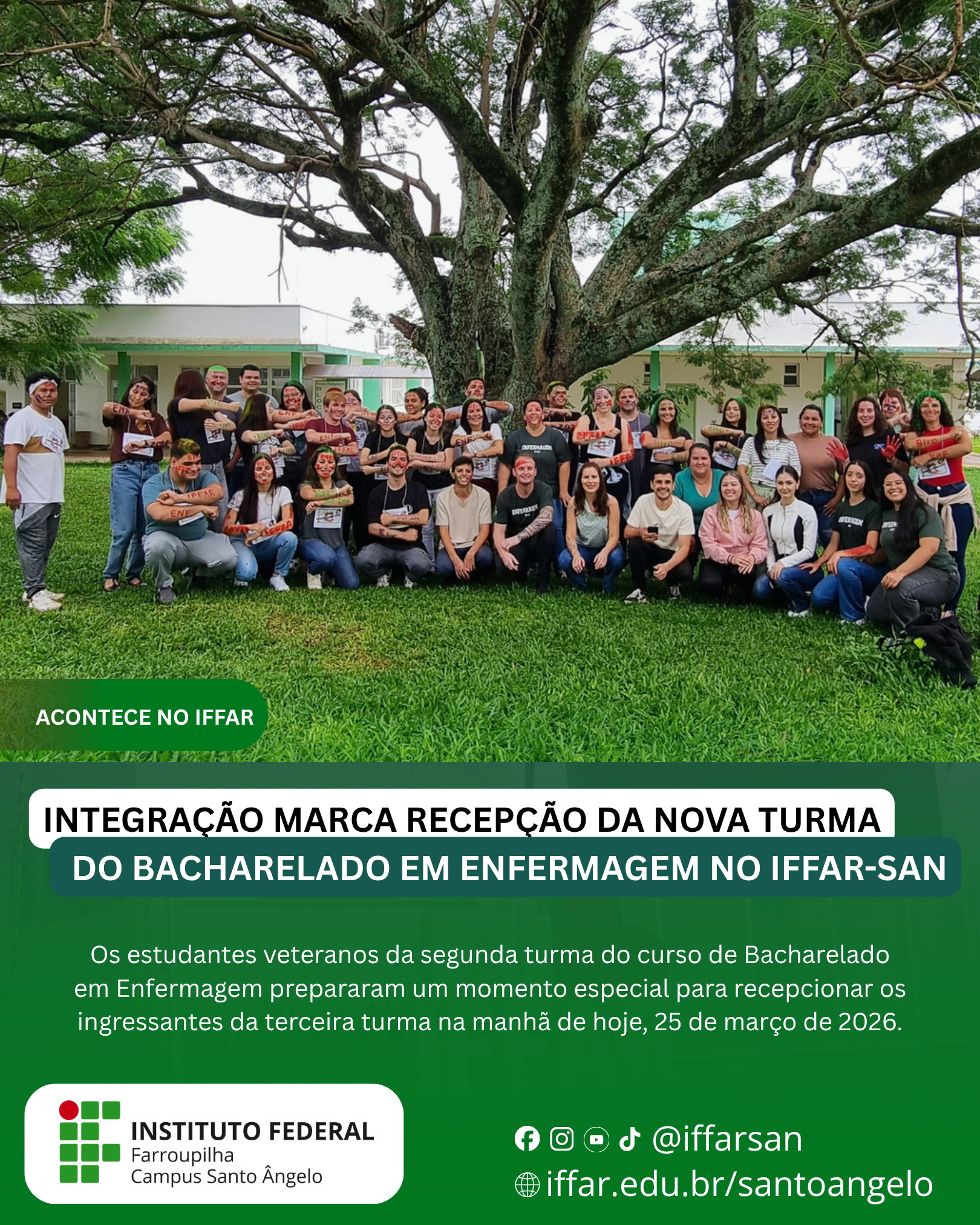 O Instituto Federal Farroupilha – Campus Santo Ângelo (IFFar-SAn) realizou, na manhã desta quarta-feira, um momento especial de acolhimento e integração para os estudantes ingressantes do curso de Bacharelado em Enfermagem.