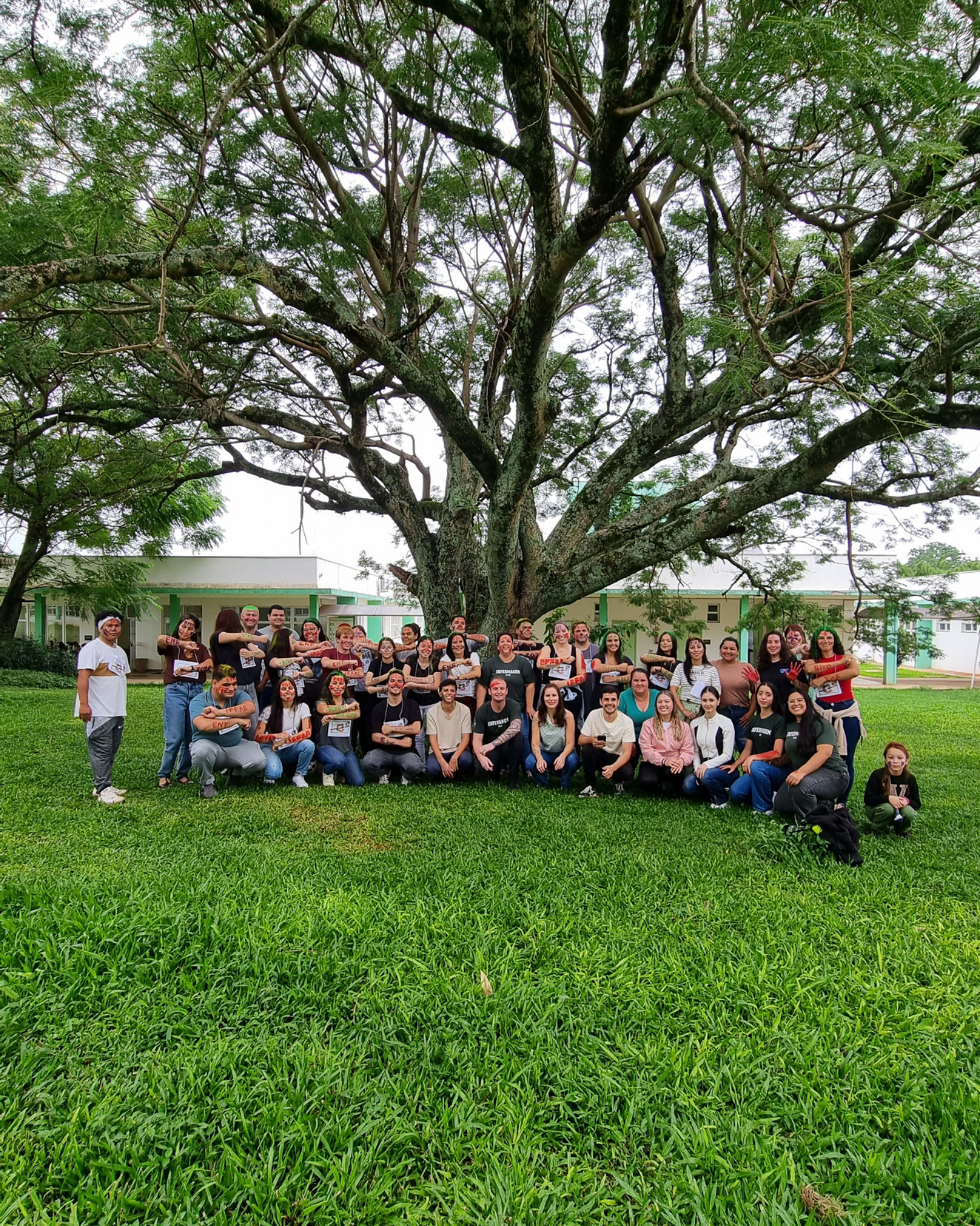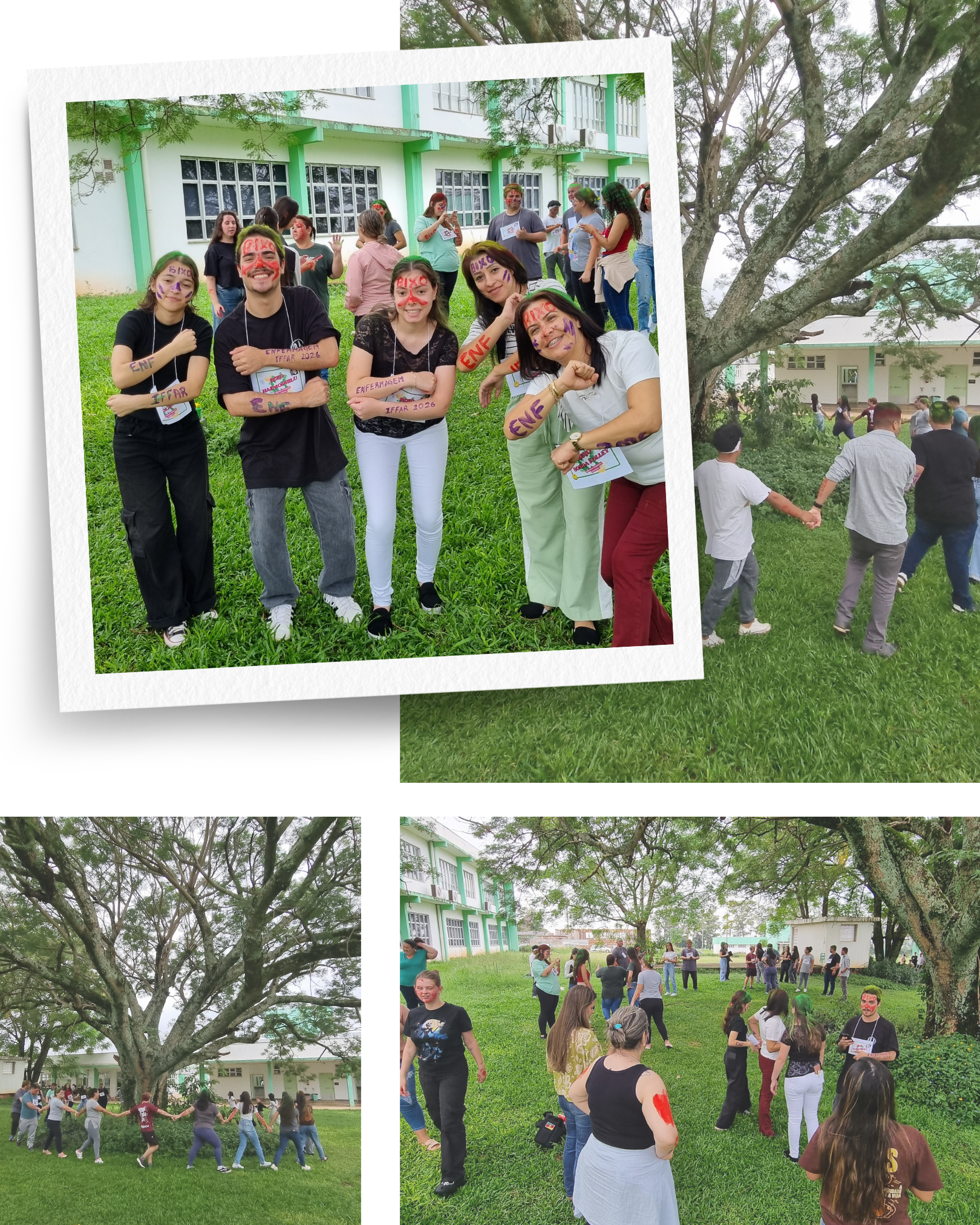 Durante o encontro, foram realizadas diversas dinâmicas, como pintura de rostos, cantigas e momentos de descontração, além de uma ciranda ao redor de uma árvore próxima aos blocos pedagógicos A, B e C do campus. As ações proporcionaram um ambiente acolhedor e favoreceram a aproximação entre os estudantes.