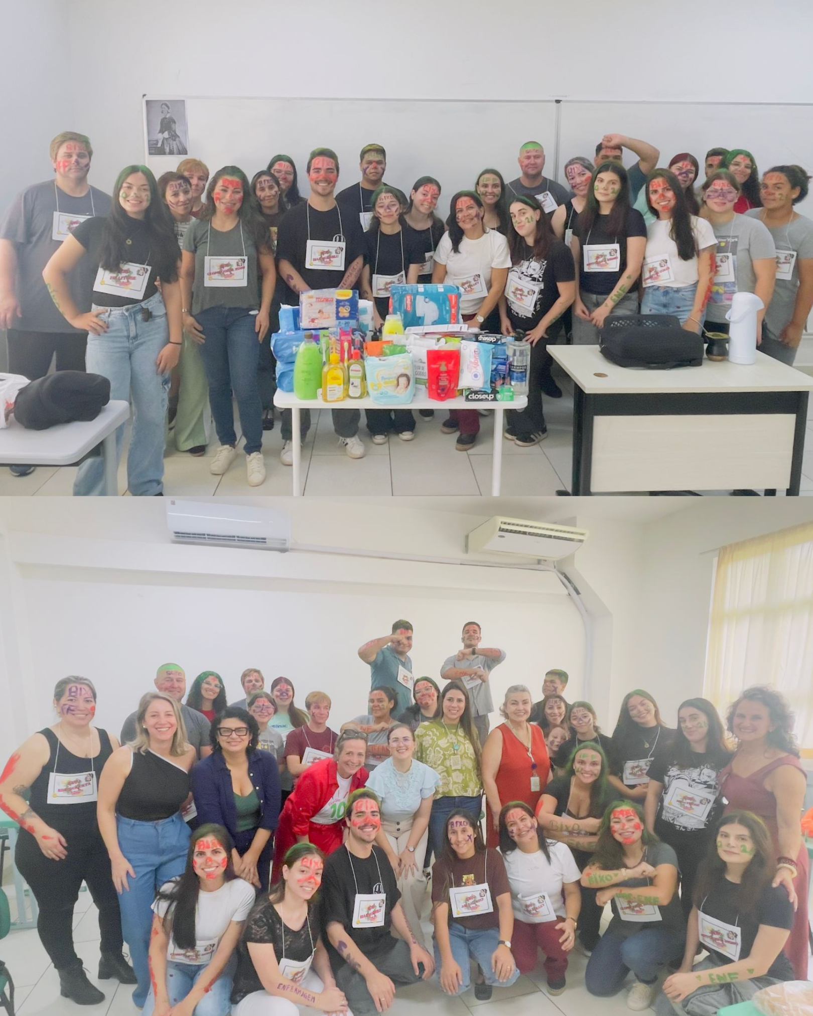 Além da integração, o momento também foi marcado por uma ação solidária. Os estudantes ingressantes realizaram a arrecadação de materiais de higiene destinados ao Hospital Regional das Missões (HRM), com doações próprias e apoio de familiares e empresas da cidade. Os estudantes veteranos também contribuíram com doações, reforçando o espírito coletivo da iniciativa.
