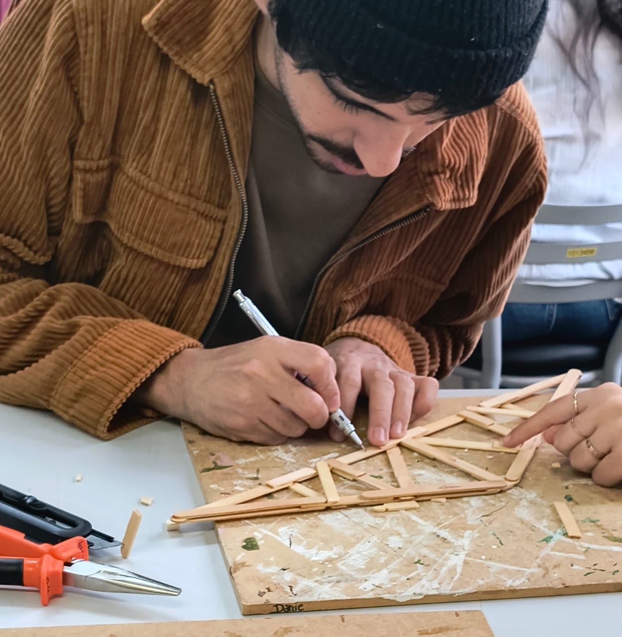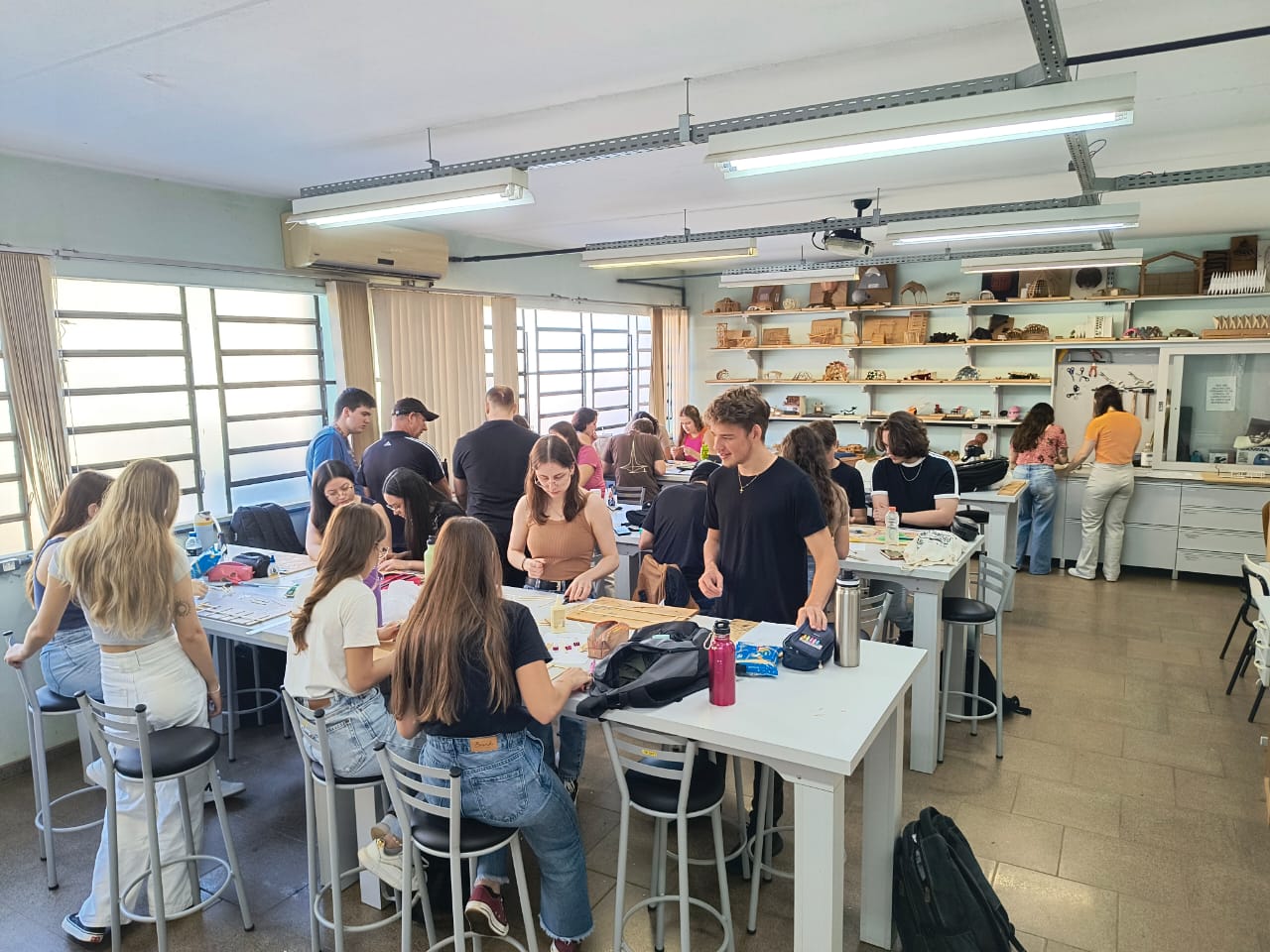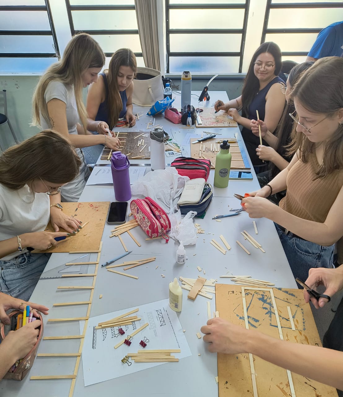 No dia 08 de abril de 2026, os acadêmicos do 3º semestre do curso de Bacharelado em Arquitetura e Urbanismo, orientados pela Profª Ma. Neidi Kunkel, realizaram a atividade prática de execução de treliça, com palitos de picolé e cola.