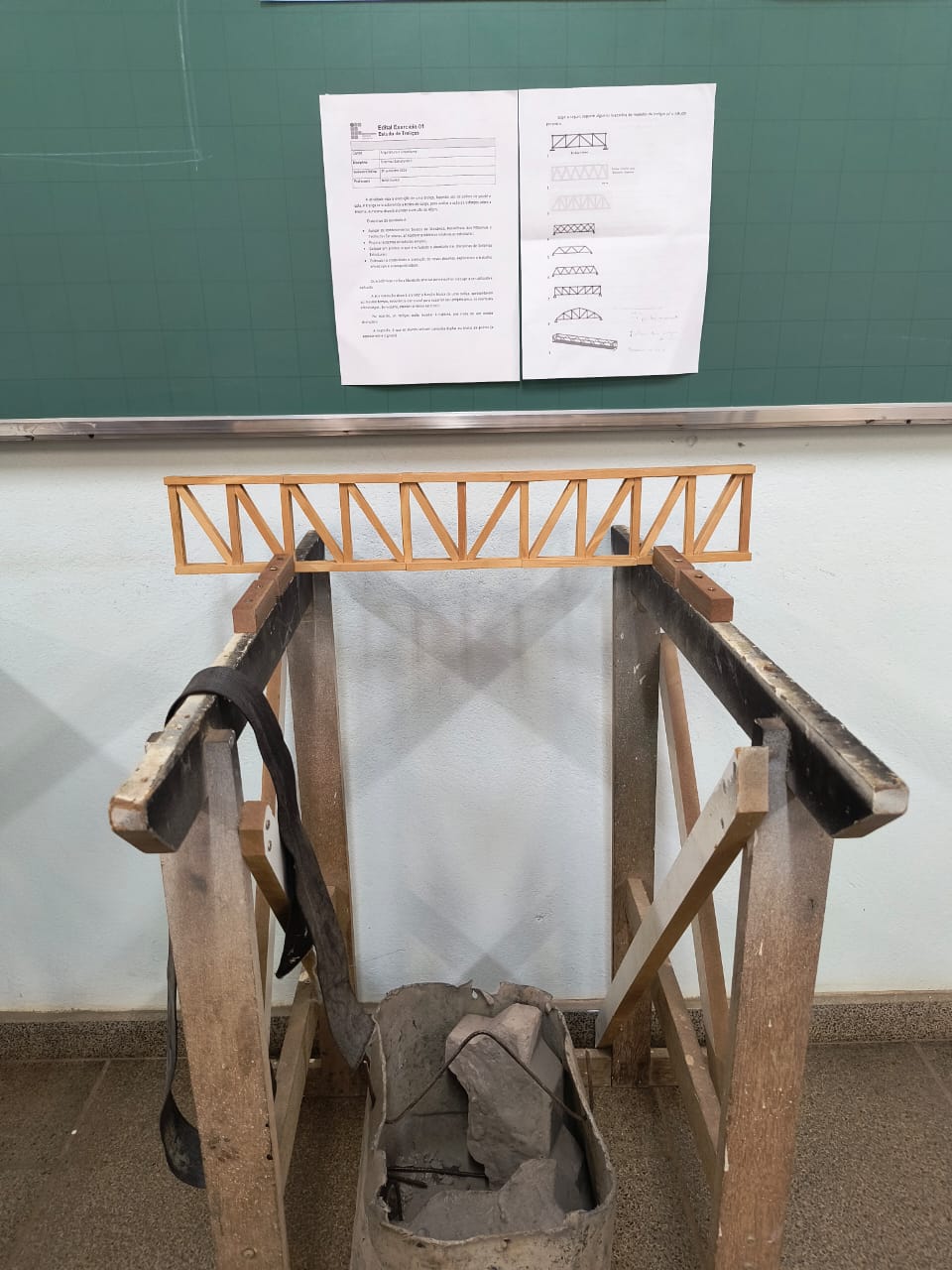 Os discentes tiveram a liberdade criativa para escolher o design a ser utilizado na treliça, desde que respeitassem a função básica da estrutura, apresentando, ao mesmo tempo, resistência estrutural para suportar seu próprio peso, eventuais sobrecargas, e atender critérios estéticos. Durante os testes de carga, as treliças serão levadas à ruptura, por meio de um ensaio destrutivo.
