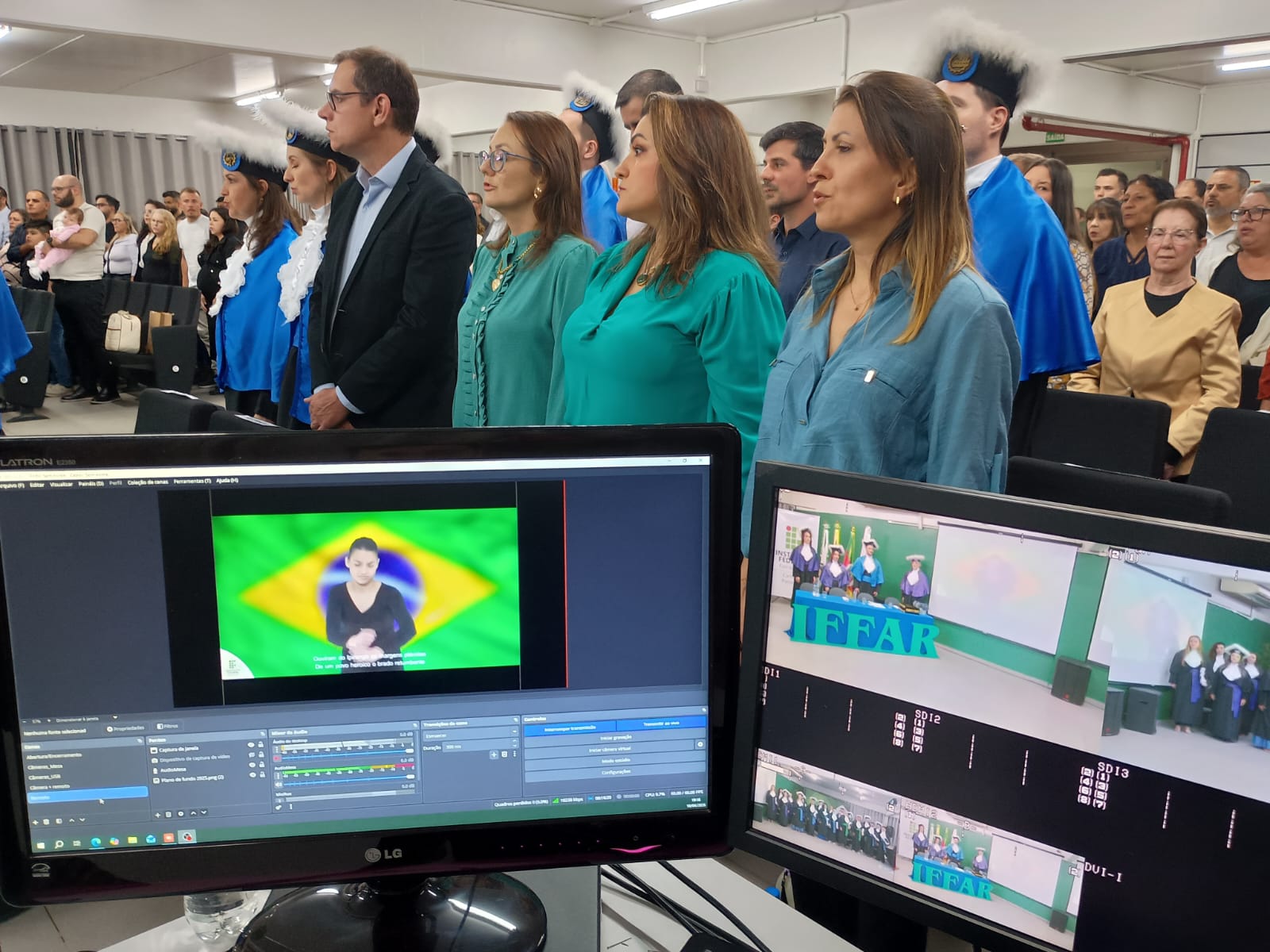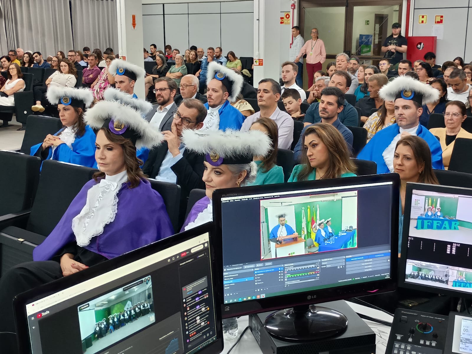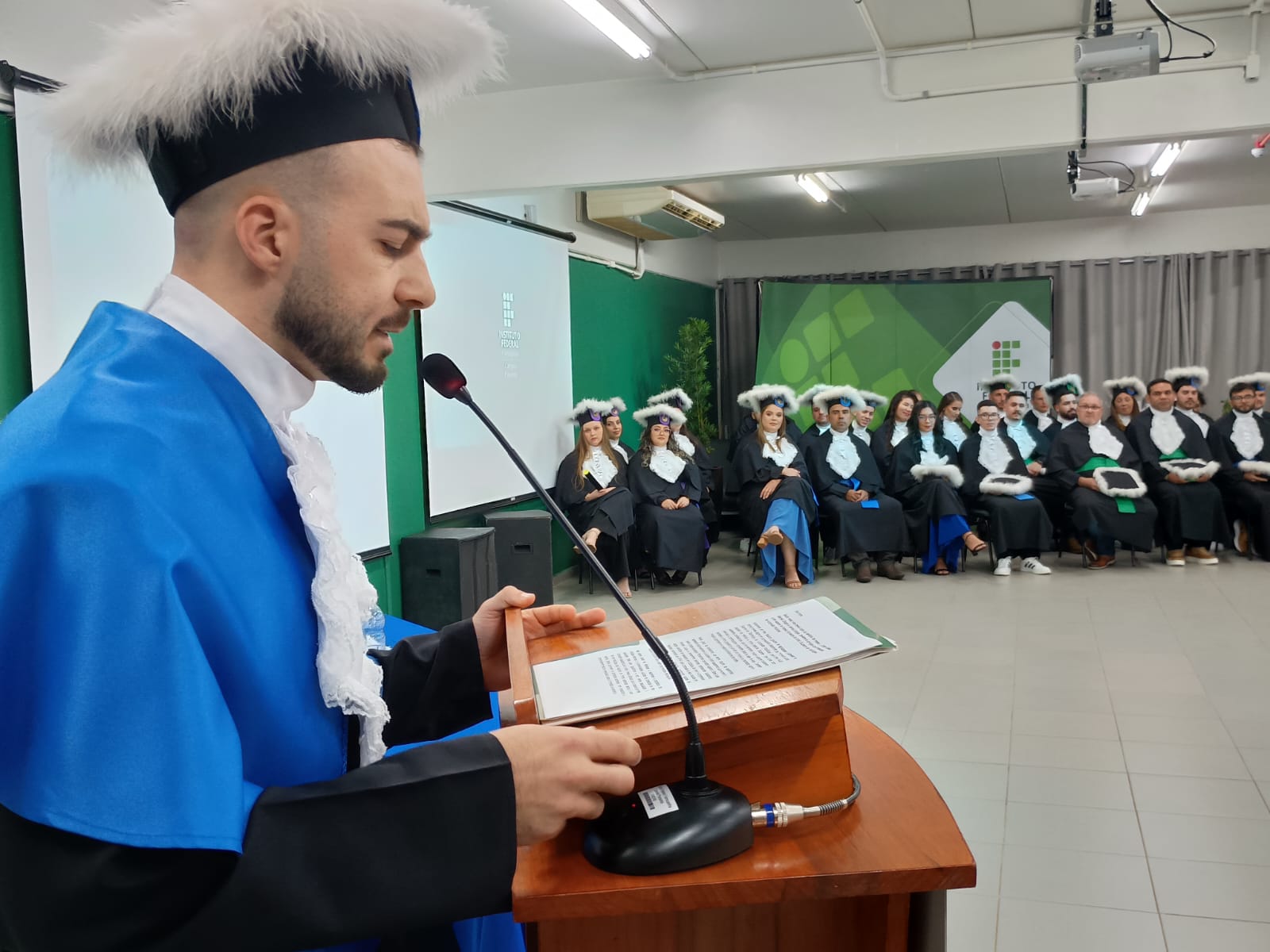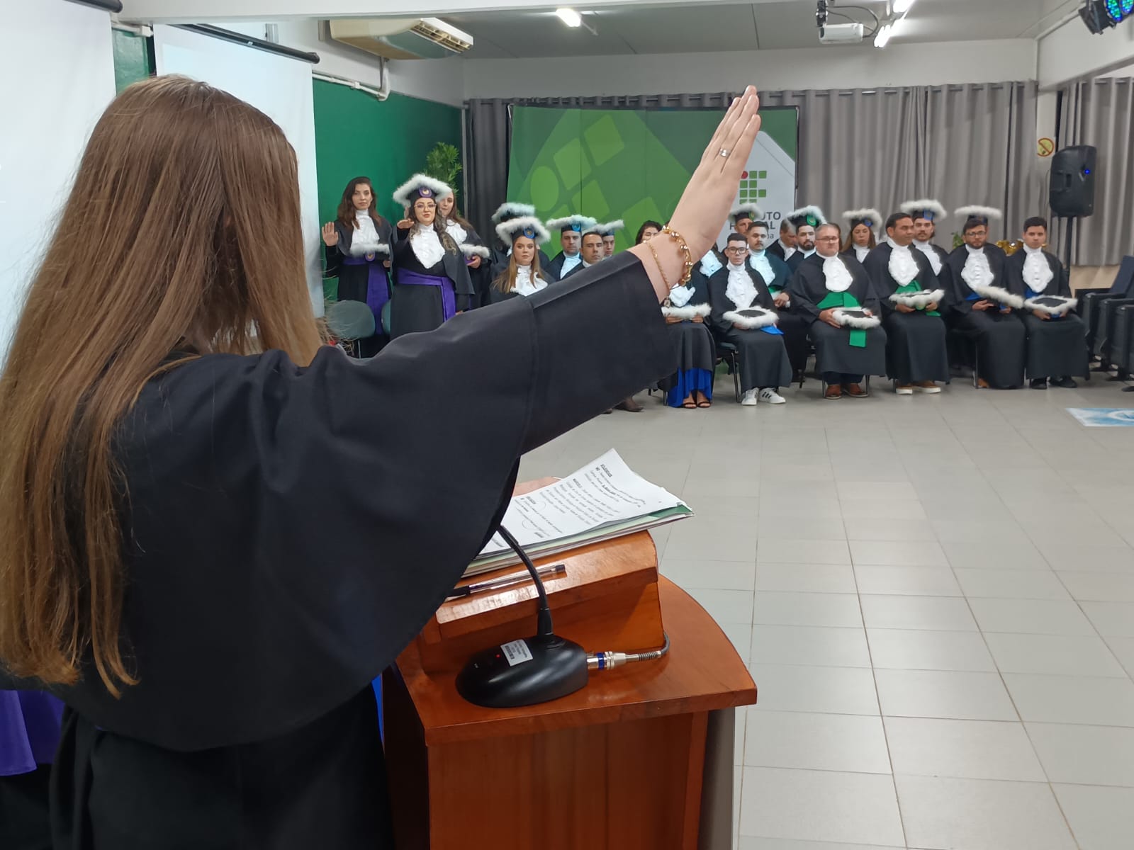 A cerimônia reuniu autoridades acadêmicas, familiares e convidados, marcando a conquista dos formandos. A sessão foi presidida pelo Diretor-Geral do campus, professor Marcelo Bataglin, responsável pela outorga de grau aos concluintes.