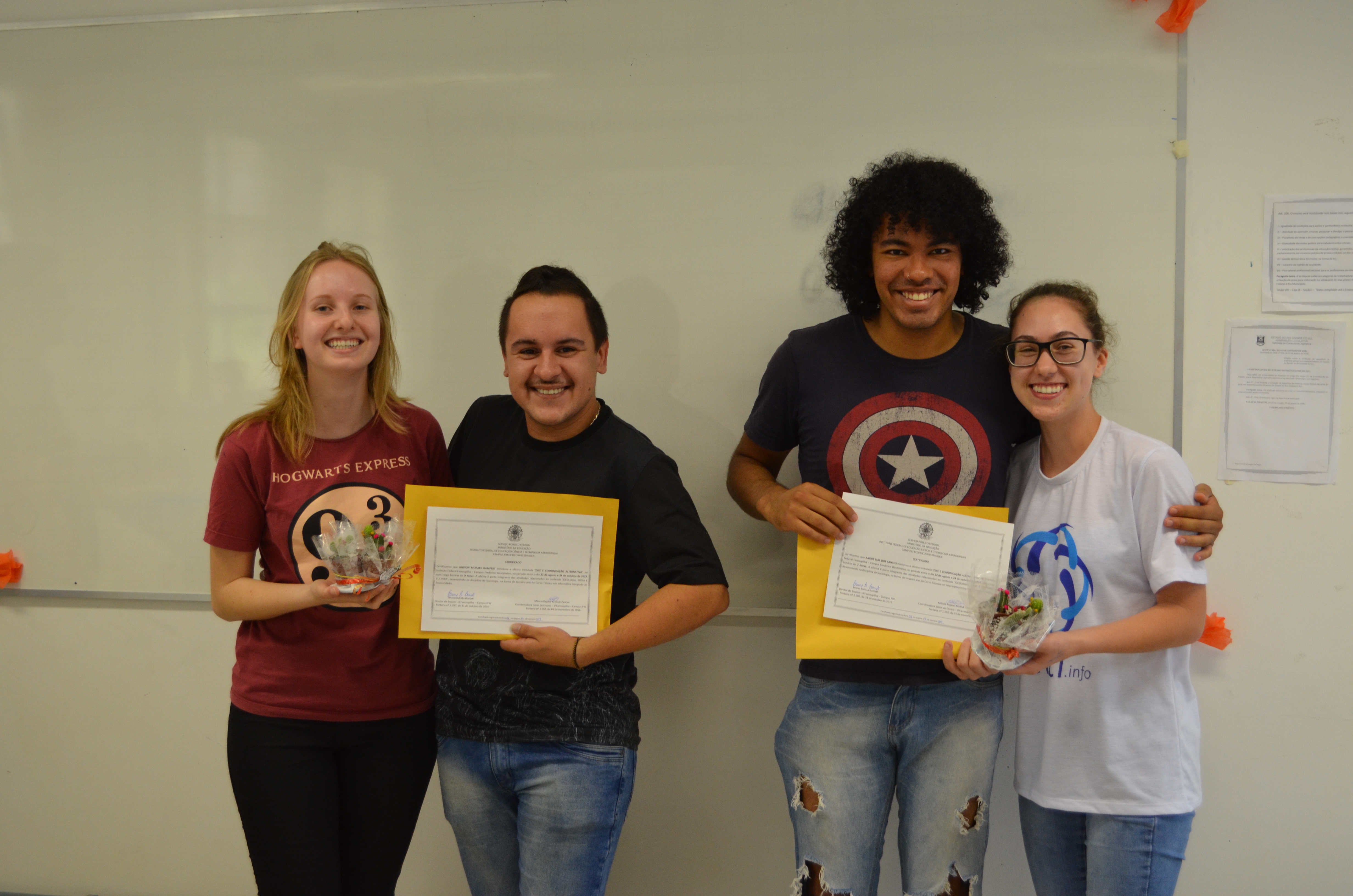 Na quinta-feira, 07 de outubro, foi realizada a entrega de certificados aos acadêmicos de Comunicação da UFSM-FW, Alisson Moraes Gampert (Relações Públicas - Bacharelado) e André Luís dos Santos (Jornalismo - Bacharelado), os quais participaram de atividades vinculadas à disciplina de sociologia, no período de 22 de agosto a 24 de outubro de 2019,com a turma do terceiro (3º) ano do Curso Técnico em Informática integrado ao Ensino Médio, coordenada pelo professor William Nunes.