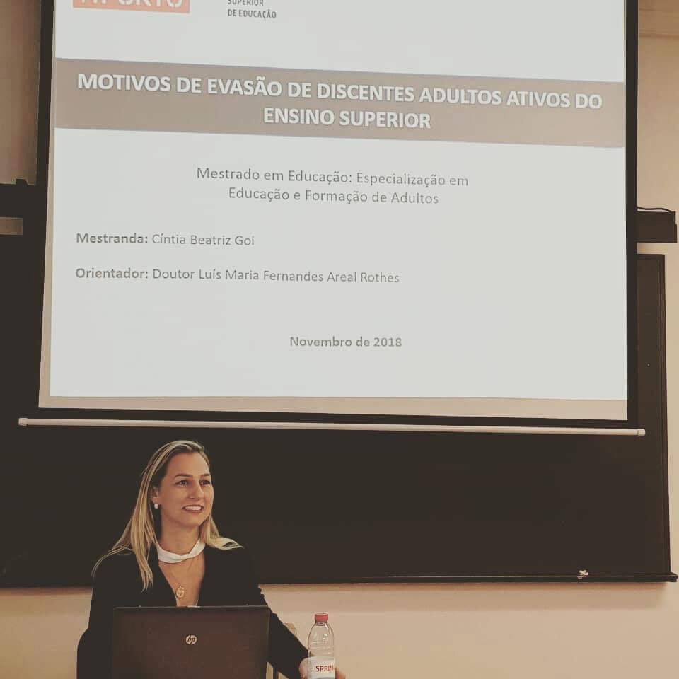 Cíntia Goi: pesquisa sobre os motivos de evasão de discentes adultos ativos do ensino superior. Por meio de uma escala validada, a autora avaliou sete principais motivos que podem levar os discentes a evadir: Motivos Institucionais; Motivos Vocacionais; Motivos Relacionado à Falta de Suporte; Motivos Relacionados ao Desempenho Acadêmico; Motivos Interpessoais; Motivos Relacionados à Carreira e Motivos Relacionados à Autonomia.