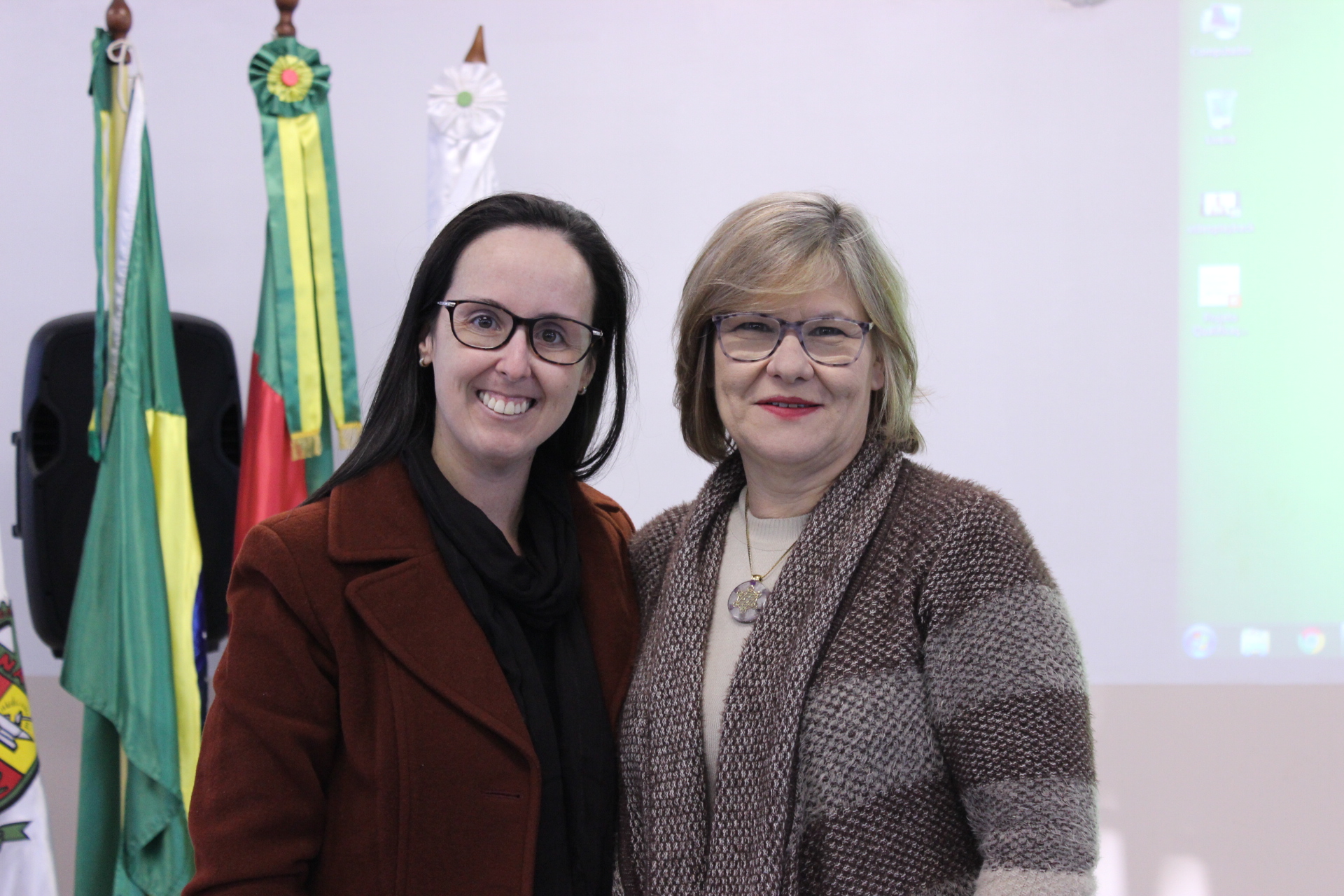 A coordenadora da Licenciatura em Matemática, professora Luciane Goin Abitante, e o coordenador do Setor de Registros Acadêmicos, Delmar Lorscheiter, participaram da cerimônia.