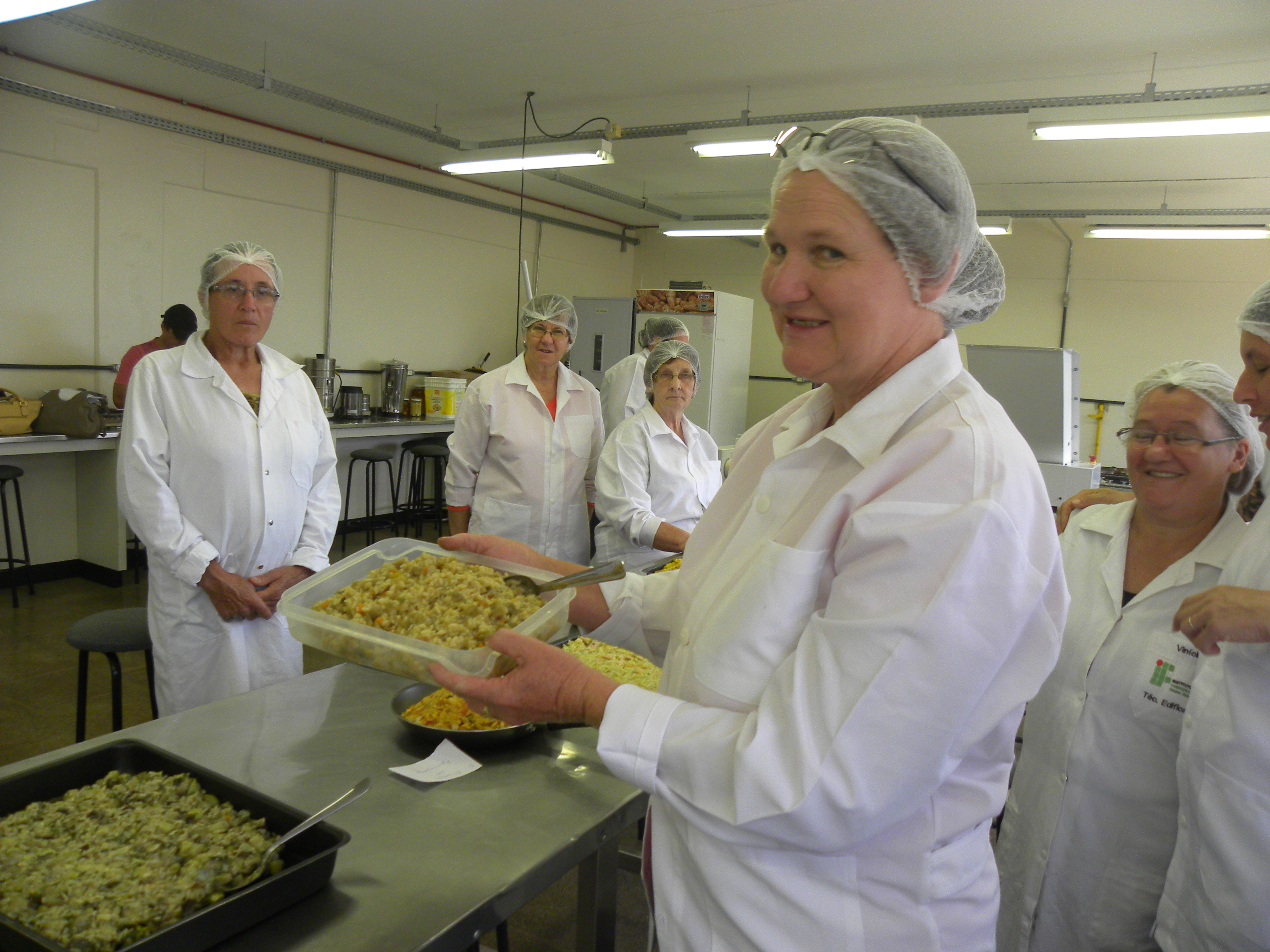 Na manhã desta sexta-feira (16), o Núcleo de Desenvolvimento Territorial do Território Fronteira Noroeste – NEDET, projeto sediado no IFFar – Campus Santa Rosa, realizou uma oficina prática de risotos para um grupo de mulheres vinculadas à Emater do município de Tucunduva. A ação aconteceu no Laboratório de Alimentos do Campus, coordenada pela nutricionista Tânia Pinheiro e organizada por Tânia Tissot, membro da equipe NEDET.