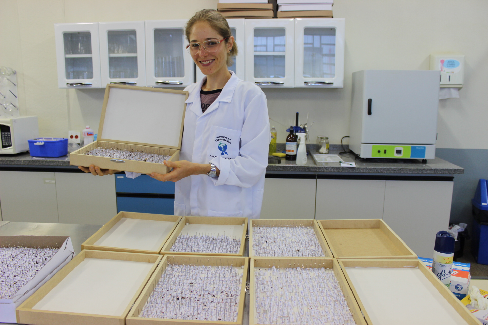 Para isso, desde agosto de 2018, a cada 15 dias, estão sendo coletadas formigas que ocorrem nesse local a partir do emprego de armadilhas de queda (Pitfalls). Essas armadilhas estão dispostas em duas áreas, sendo uma de mata mais aberta e outra mais fechada, contendo 10 armadilhas cada. Após a coleta do conteúdo das armadilha, os exemplares de formigas encontradas são fixados em álcool 70% e identificados a nível específico.