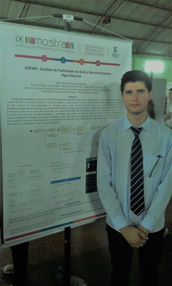 3º lugar - Felipe Juris Jacques, do Campus Panambi, com o trabalho "Asfar - Análise de Fertilidade do Solo e Recomendações Agronômicas".