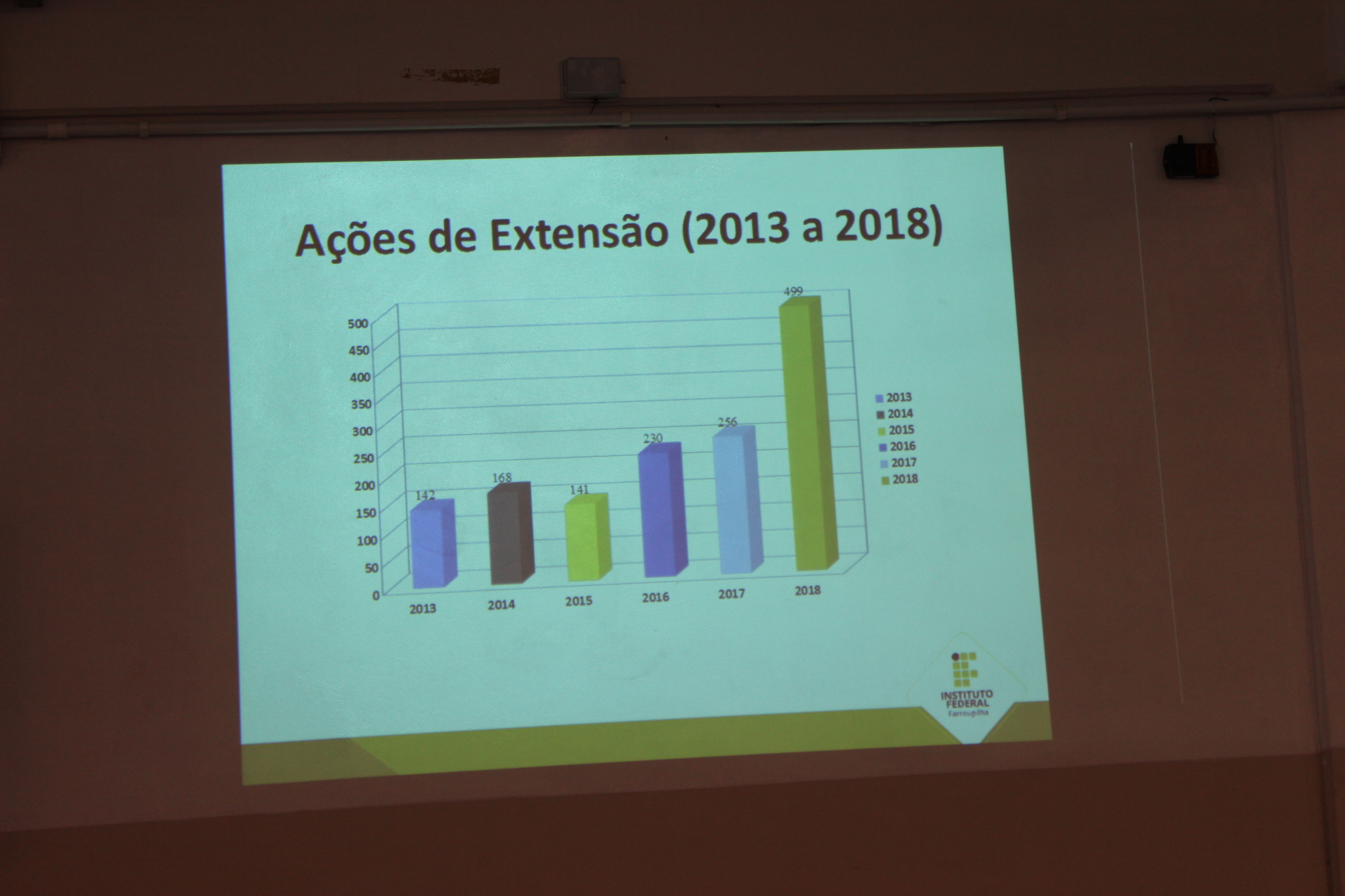 Ações de extensão caracterizam-se pelo compartilhamento de saberes da comunidade interna do IFFar com o público externo. No ano de 2018, servidores/as e alunos/as do Instituto Federal Farroupilha realizaram 499 ações de extensão, impactando um público de mais de 95.000 pessoas.