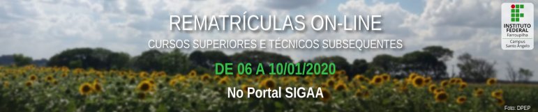As rematrículas dos Cursos Subsequentes e Superiores deverão ser feitas no SIGAA no período de 06/01 a 10/01/2020 através do Portal do Discente no Menu: