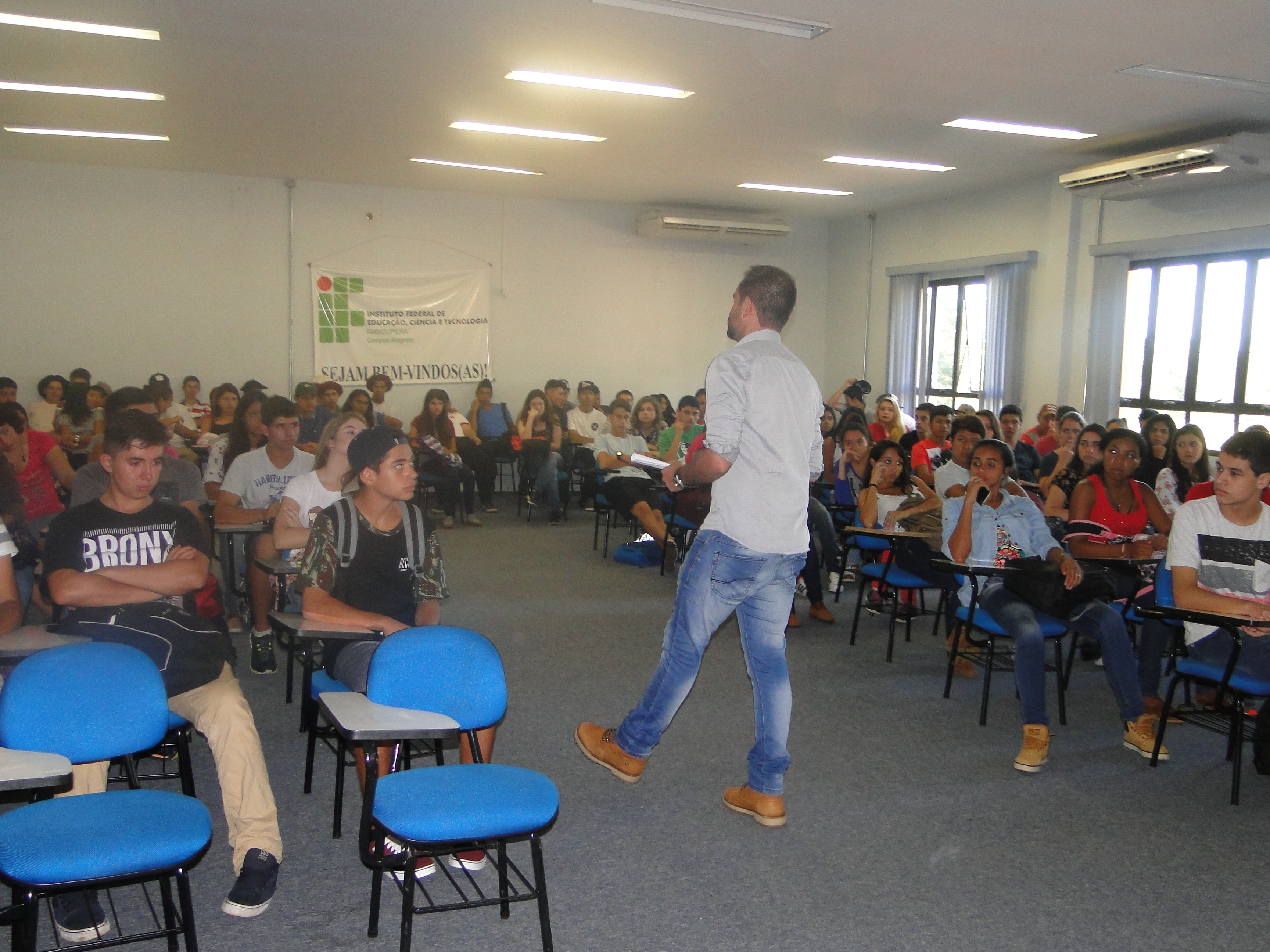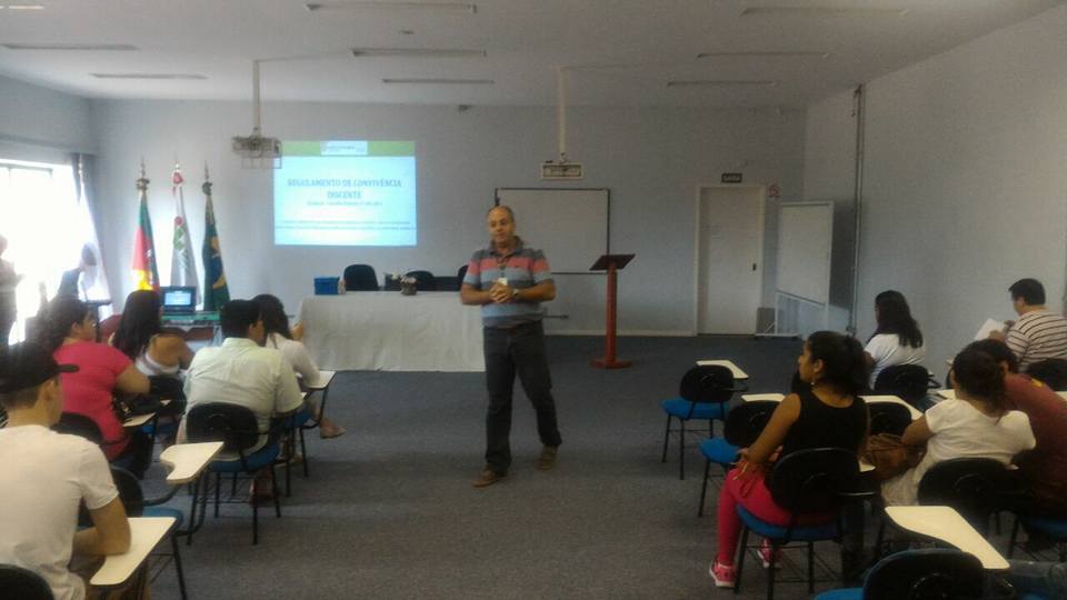 Também os alunos foram recebidos com a fala dos servidores da Coordenação Geral de Ensino, Setor de Apoio Pedagógico, Biblioteca, Coordenação de Registros Acadêmicos, Coordenação de Ações Inclusivas e Coordenação de Ações Inclusivas.