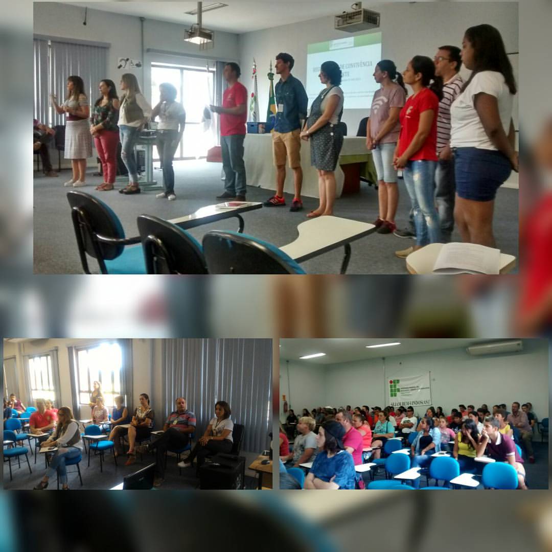 Já na segunda-feira, foi o dia de receber os servidores que estavam em férias. Na programação, após o café da manhã e a saudação da Direção, uma palestra foi ministrada pelo docente do Campus Jaguari, Prof. Ricardo Antônio Rodrigues, o qual proferiu sobre o tema "A educação como direito humano fundamental e o papel social e humano dos Institutos Federais". No turno da tarde, a Psicóloga Cristina Monteiro Gomes conversou com os servidores sobre o retorno: "Bora lá! Vamos recomeçar". O dia 14, terça-feira, foi reservado para planejamento dos docentes e orientações da Direção de Ensino sobre o ano de 2017.