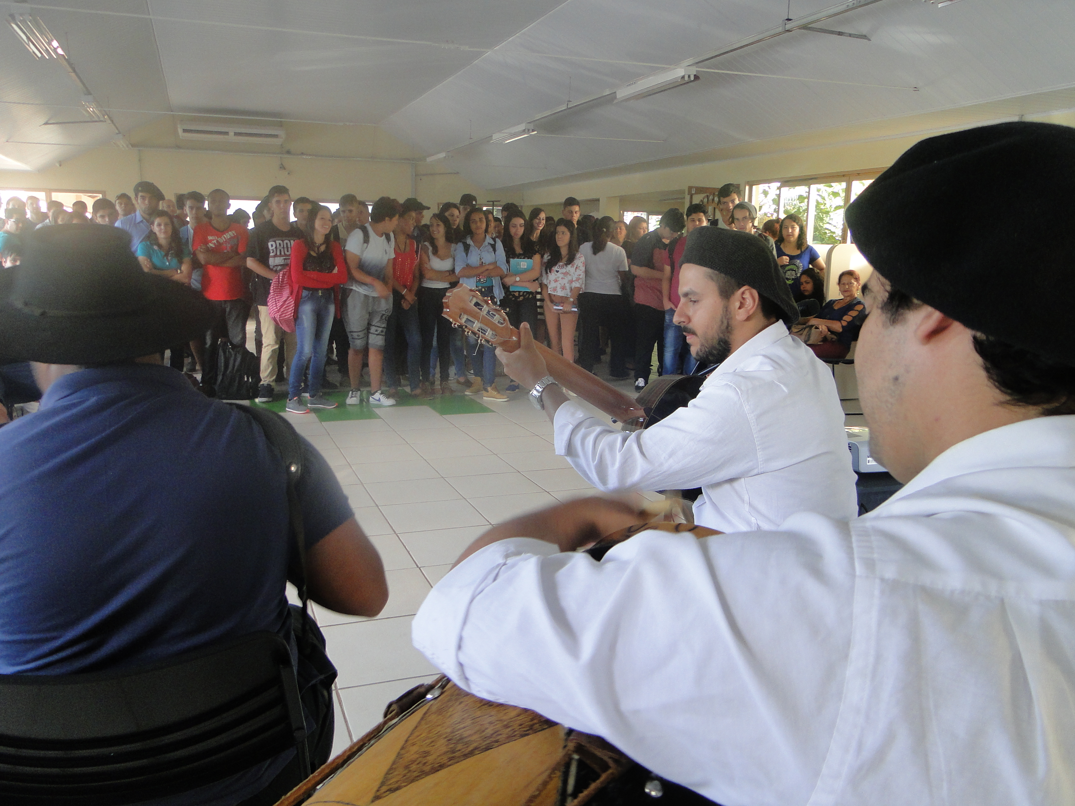 Hoje, quarta-feira, 15, o movimento do IF Farroupilha- Campus Alegrete voltou ao normal com a chegada dos alunos novatos dos cursos técnicos em Agropecuária e Informática e do reencontro dos veteranos. Calouros e veteranos foram recepcionados pelo Diretor Geral do Campus Alegrete, Prof. Rodrigo Machado, e toda a sua Equipe Diretiva, ao som nativista do aluno do curso de Zootecnia Joaquim Brasil, juntamente com seus colegas de grupo. Após a breve recepção, efetivamente, foram iniciadas as aulas.