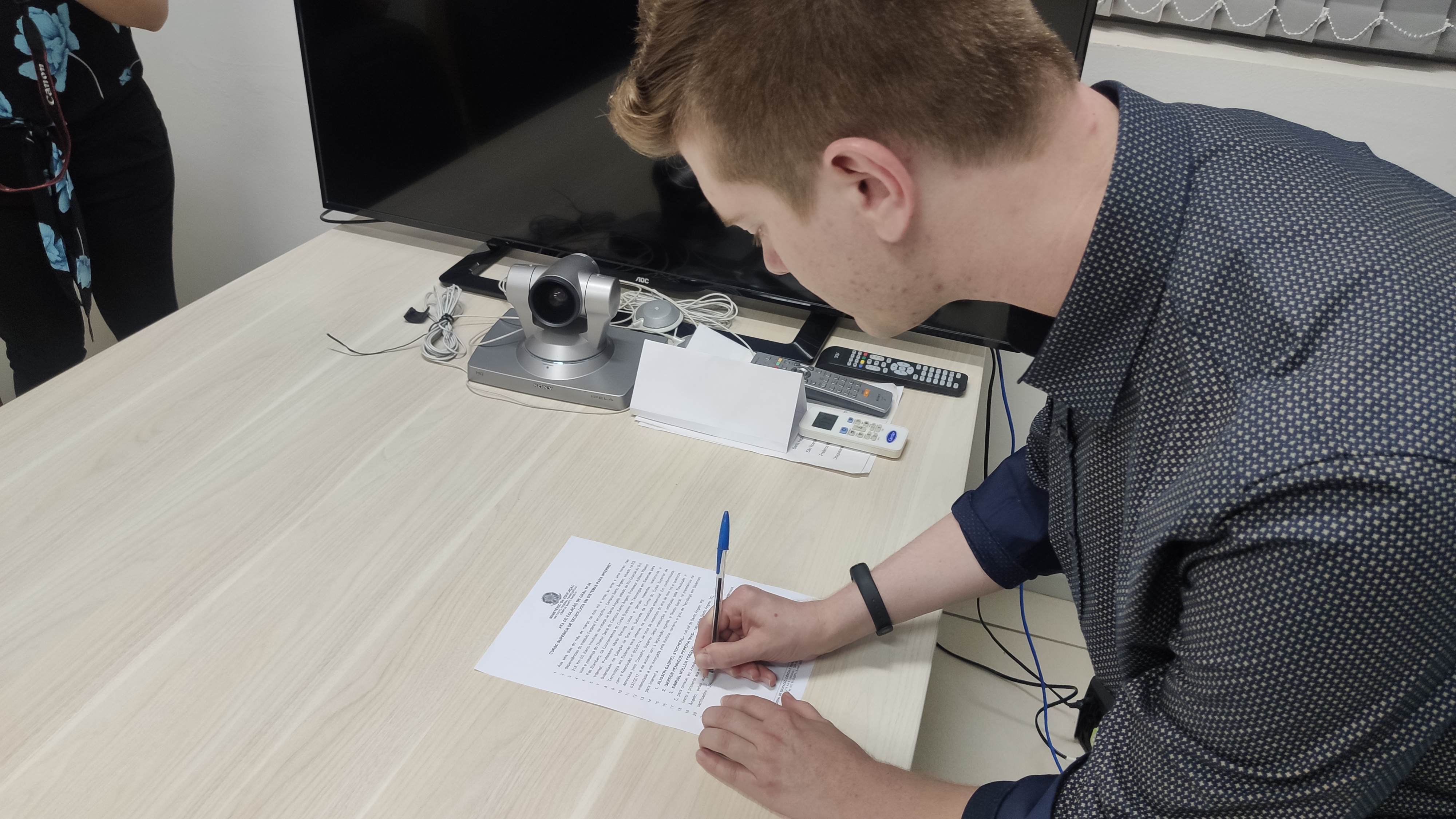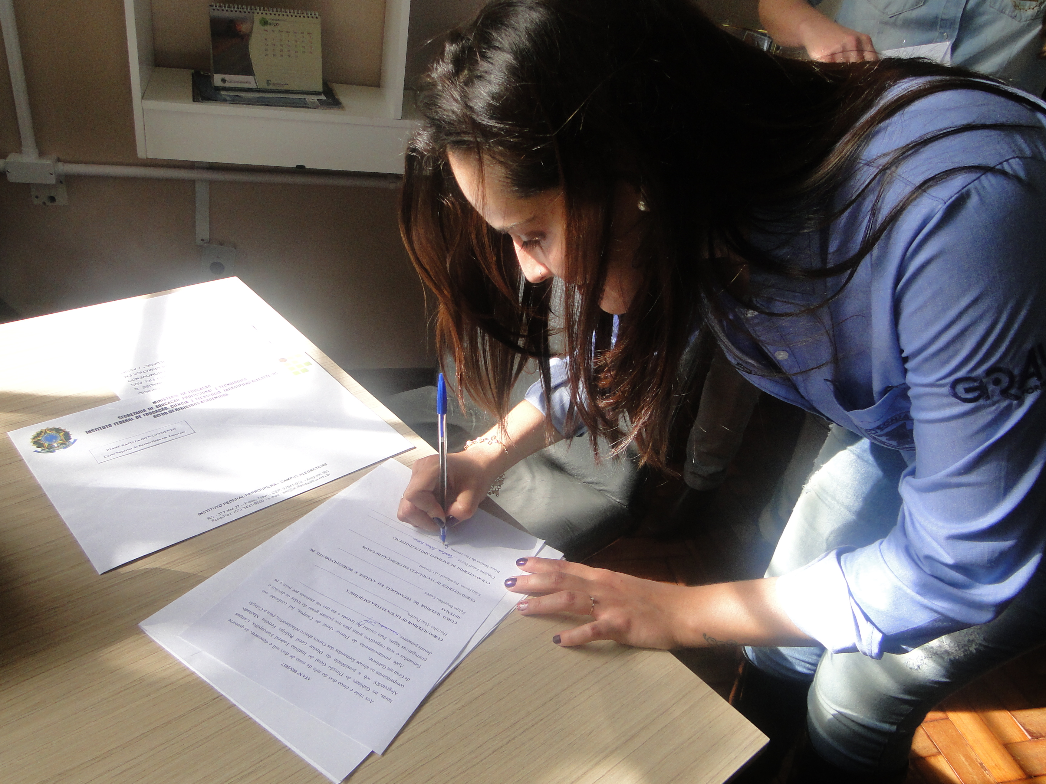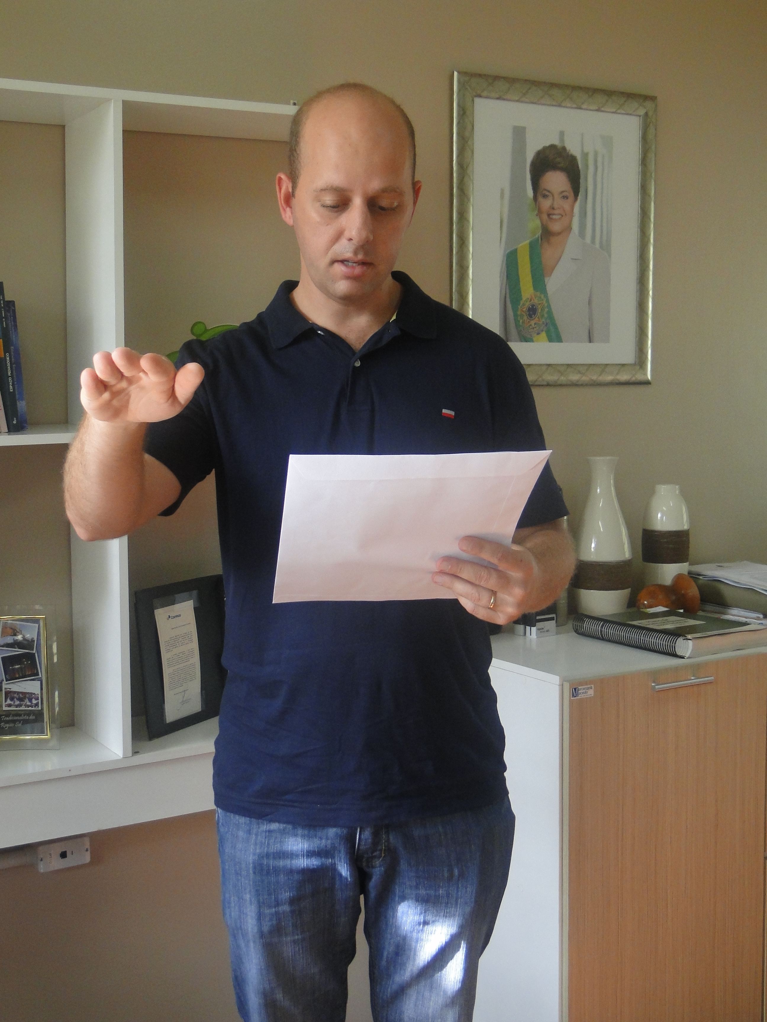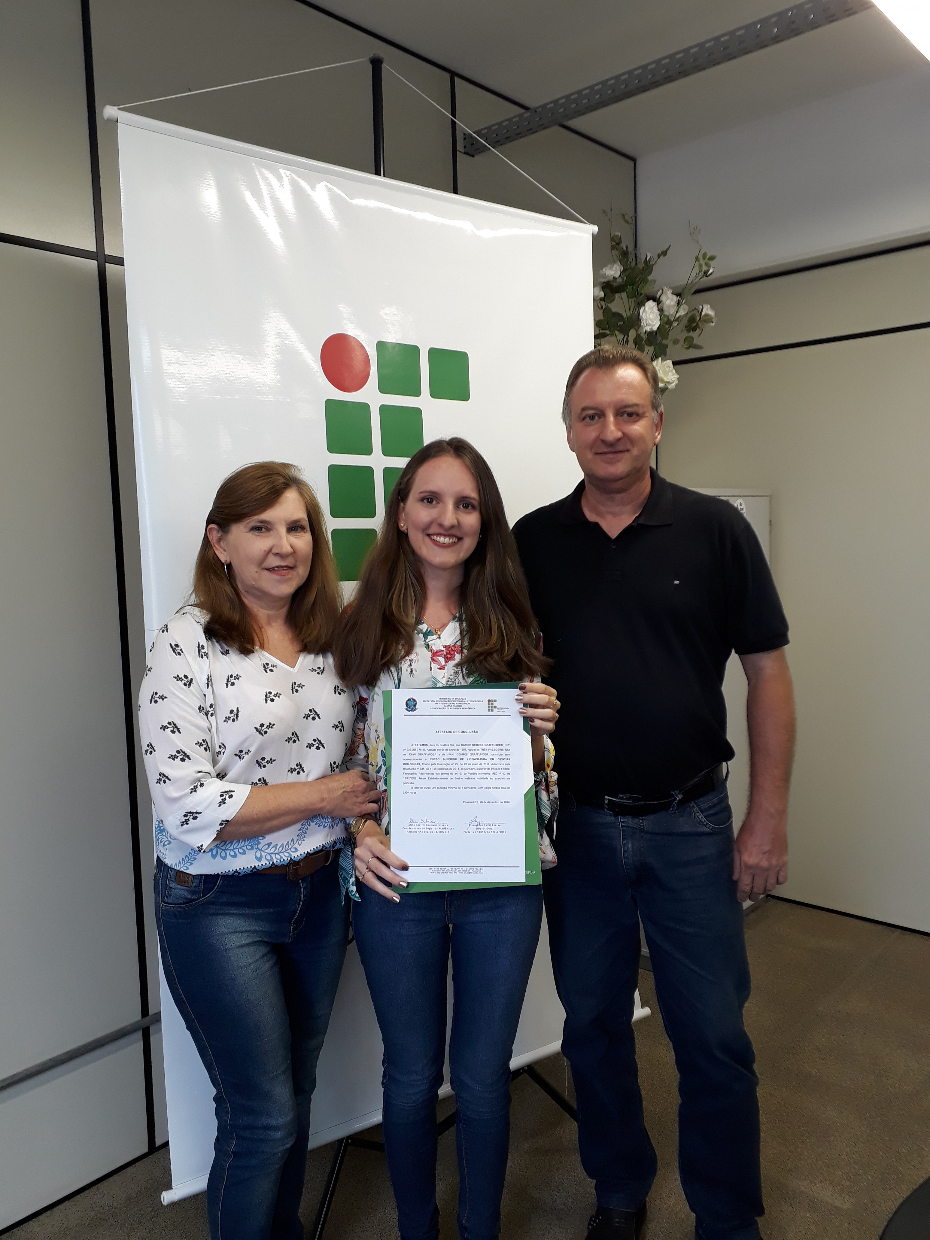 Na tarde de 26/12 dois alunos de Cursos Superiores realizaram a solenidade de formatura em gabinete, antecipadamente à solenidade de conclusão de suas turmas. Cleiton Anarolino graduou-se em Licenciatura em Química e está partindo para novos desafios profissionais em outro estado. Já Karine Graffunder formou-se em Licenciatura em Ciências Biológicas e está indo cursar mestrado na Universidade Federal de Santa Maria.