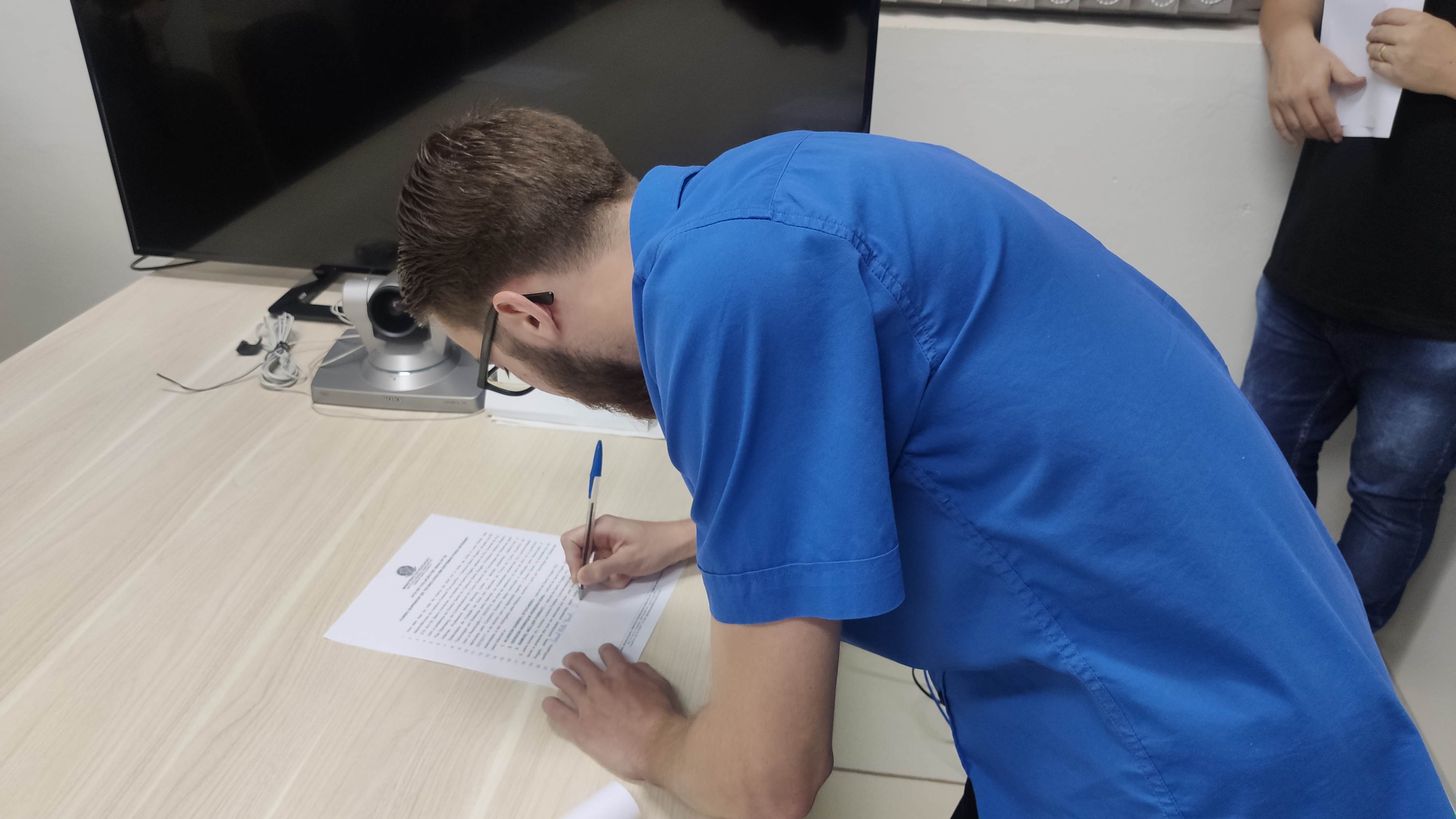 Na tarde de hoje, 25, quatro novos profissionais foram graduados pelo IFFar - Campus Alegrete. A cerimônia, ocorrida no Gabinete da Direção, foi presidida pelo Diretor Geral, Rodrigo Machado. Também estiveram presentes no ato o Coordenador do Curso de Zootecnia, Alex Leal e a Chefe Substituta do Setor de Registros Acadêmicos, Mariéle Bempch, além de familiares dos formandos.