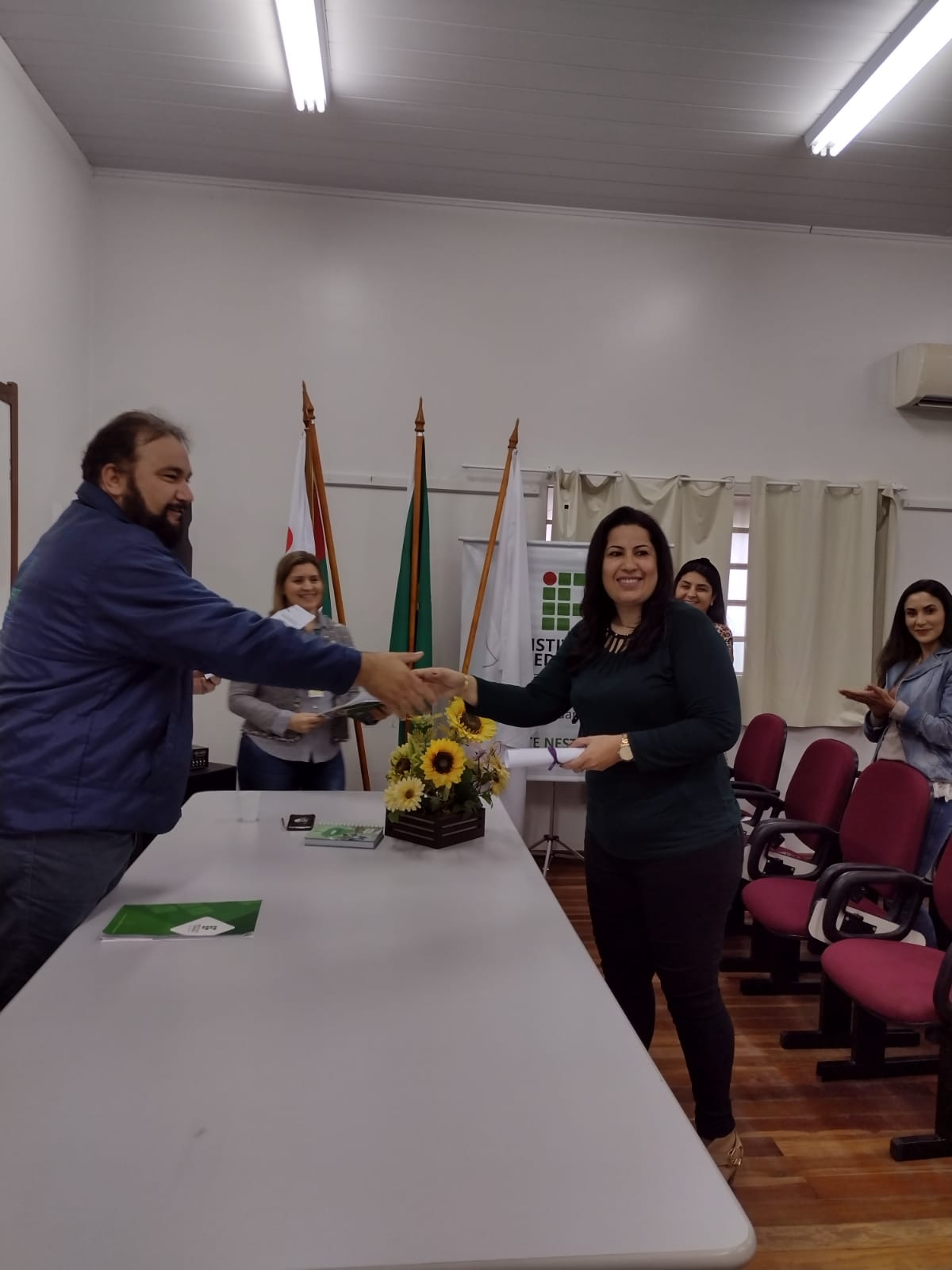 Na noite de ontem (13), o IF Farroupilha - Campus Santa Rosa realizou a Formatura de Gabinete de alunos formandos nos cursos Técnicos em Alimentos (2 alunos) e Edificações (10 alunos). O evento aconteceu às 19h30min, na sala da Entidades, e contou com a presença do diretor-geral, Marcelo Lamb, da diretora de Ensino, Analice Marchezan, das professoras Adriana Michelotti, Melissa Walter e Raquel Paranhos, do chefe de Registros Acadêmicos, Delmar Lorscheiter, além de amigos e familiares.