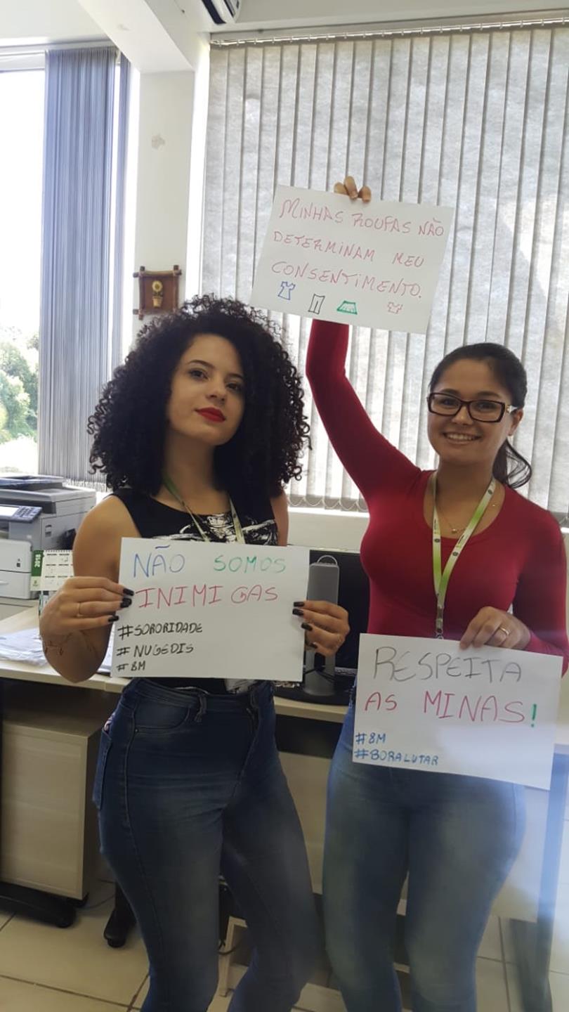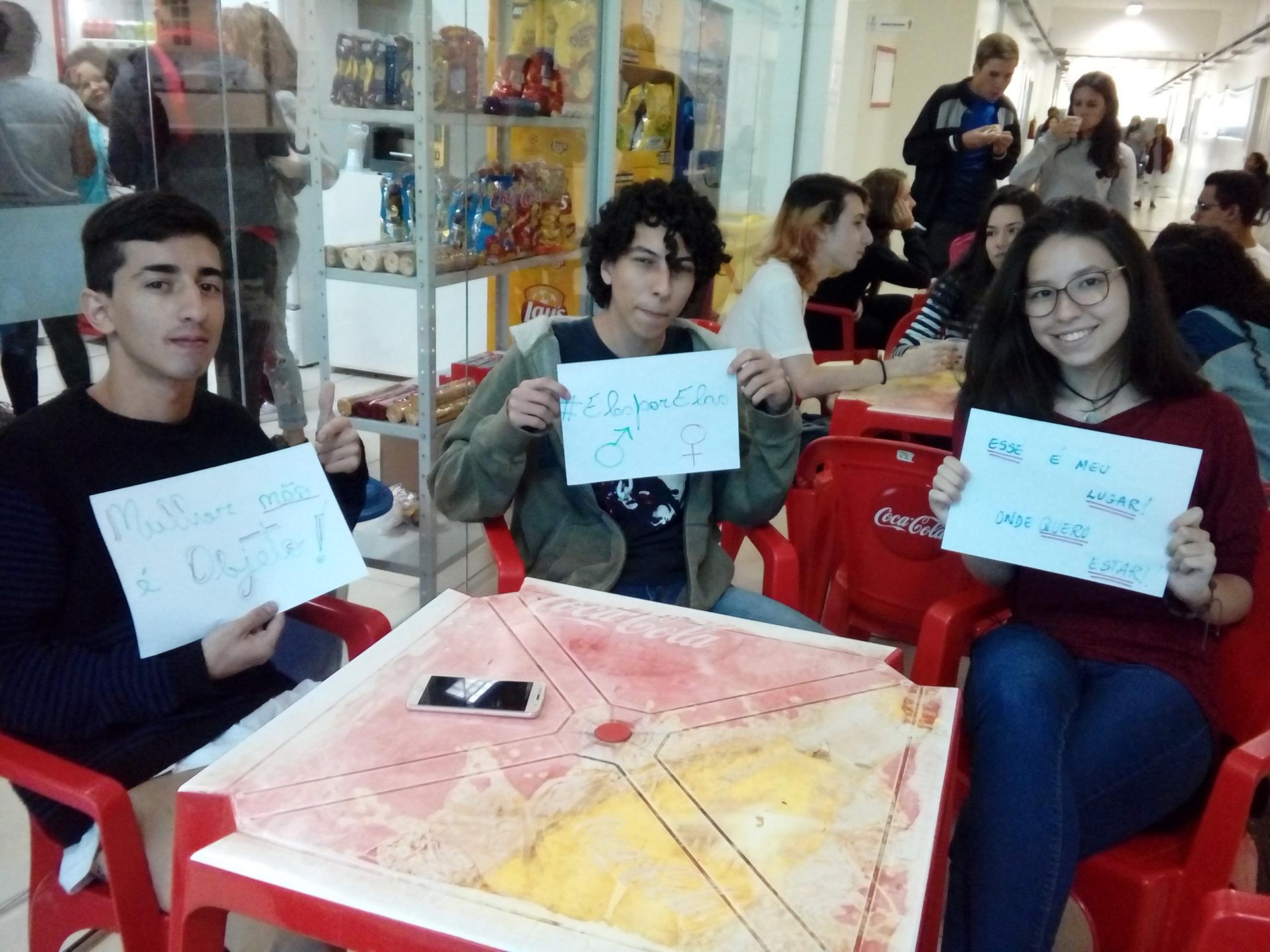 Foi uma manhã contagiante de reflexões em que todos puderam contribuir da sua forma. Ao longo do dia, os alunos e servidores também foram convidados a aderirem ao movimento através de fotografias com cartazes reflexivos sobre sororidade, empoderamento feminino e o Movimento He For She (Eles por Elas). A atividade foi proposta com o intuito de refletir esse lugar, o lugar da mulher e desconstruir a cultura da rivalidade e do machismo, buscando a empatia e a sororidade nas relações femininas.