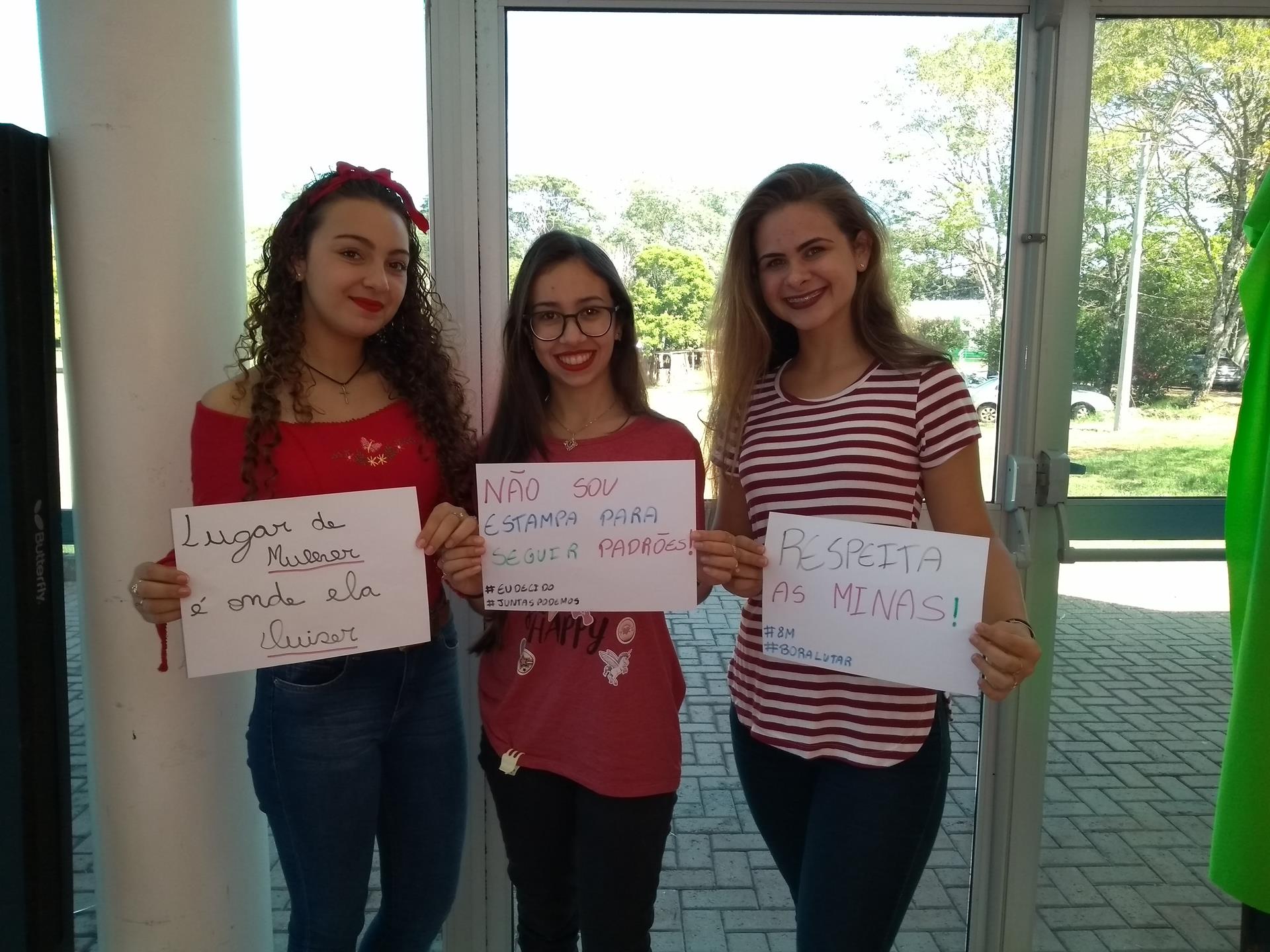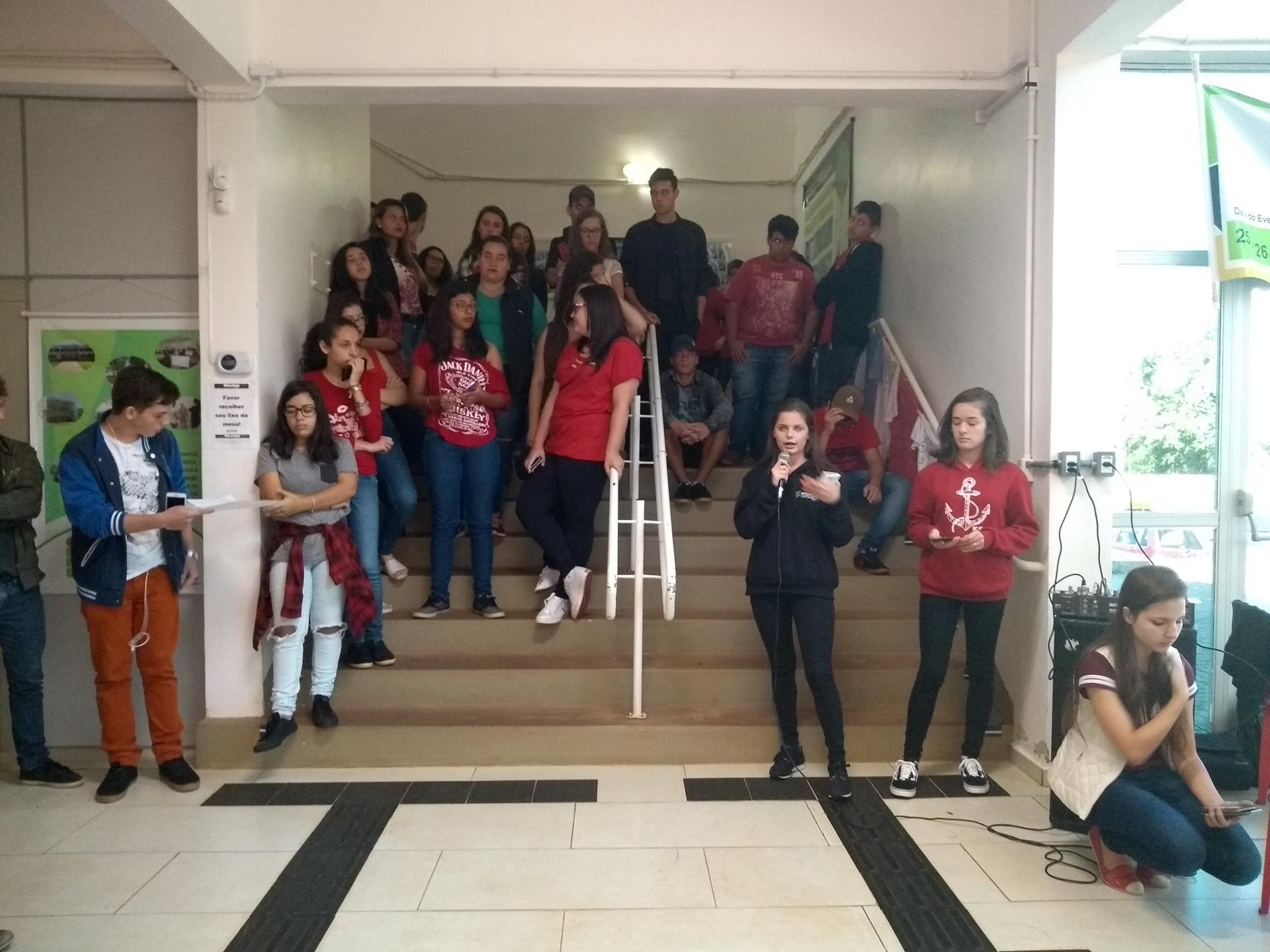 Os estudantes do Grêmio Estudantil participaram da atividade trazendo uma narrativa dos motivos da instituição do dia 8 de março como Dia Internacional da Mulher, contextualizando a história de luta pelos direitos femininos. Após essa narrativa, destacaram a história de algumas mulheres que foram significativas nas artes, ciência, literatura, etc. Por fim apresentaram um vídeo homenageando as mulheres.
