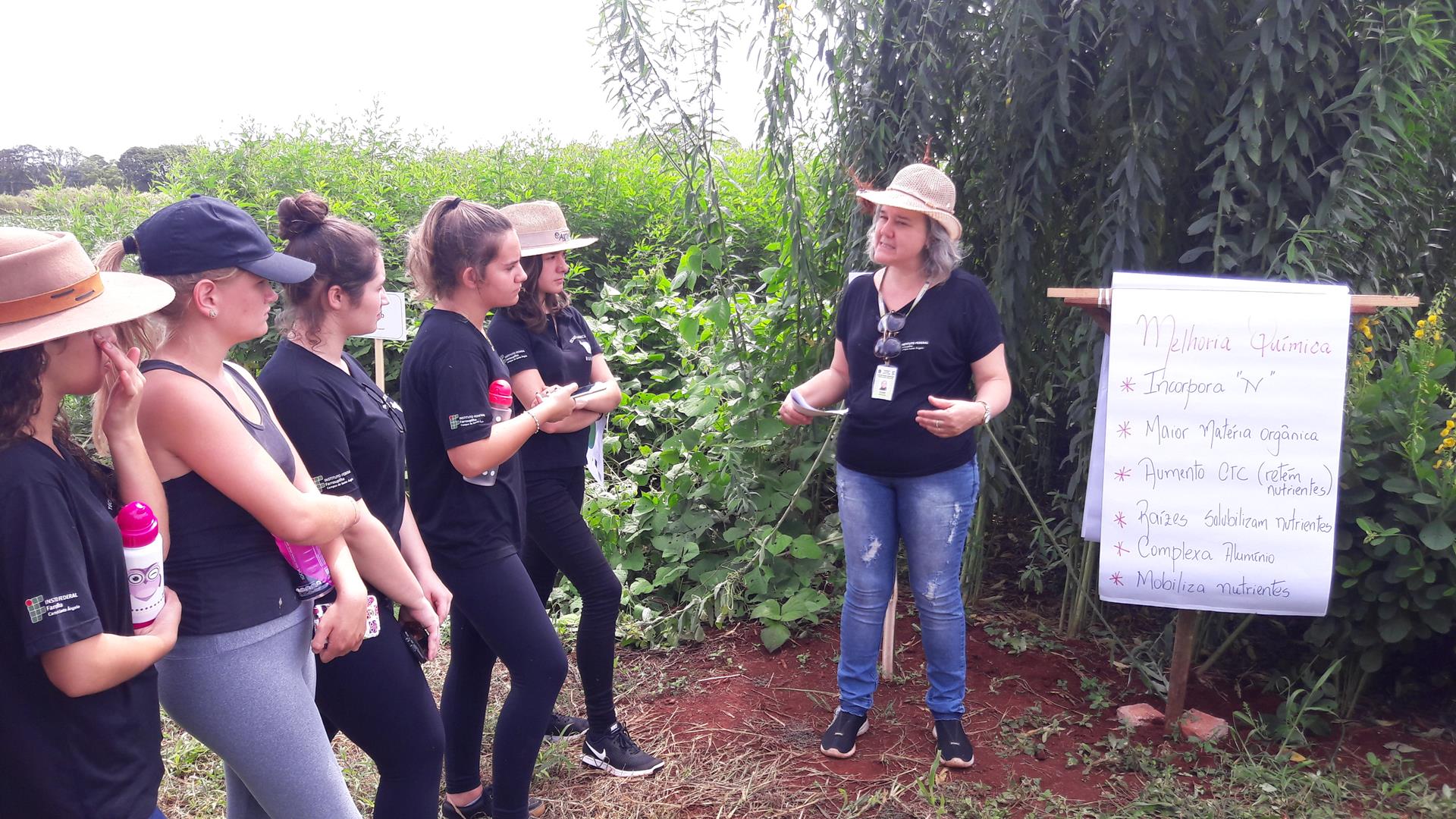 No dia 05/09, as professoras Micaela Takeuchi e Alieze Nascimento da Silva, e o professor e coordenador do Curso de Agronomia do IFFar - Campus Panambi, Volnei Meneghetti, acompanharam os estudantes do curso no XIV Dia de Campo da Cooperativa Central Gaúcha Ltda (CCGL), no município de Cruz Alta (RS).