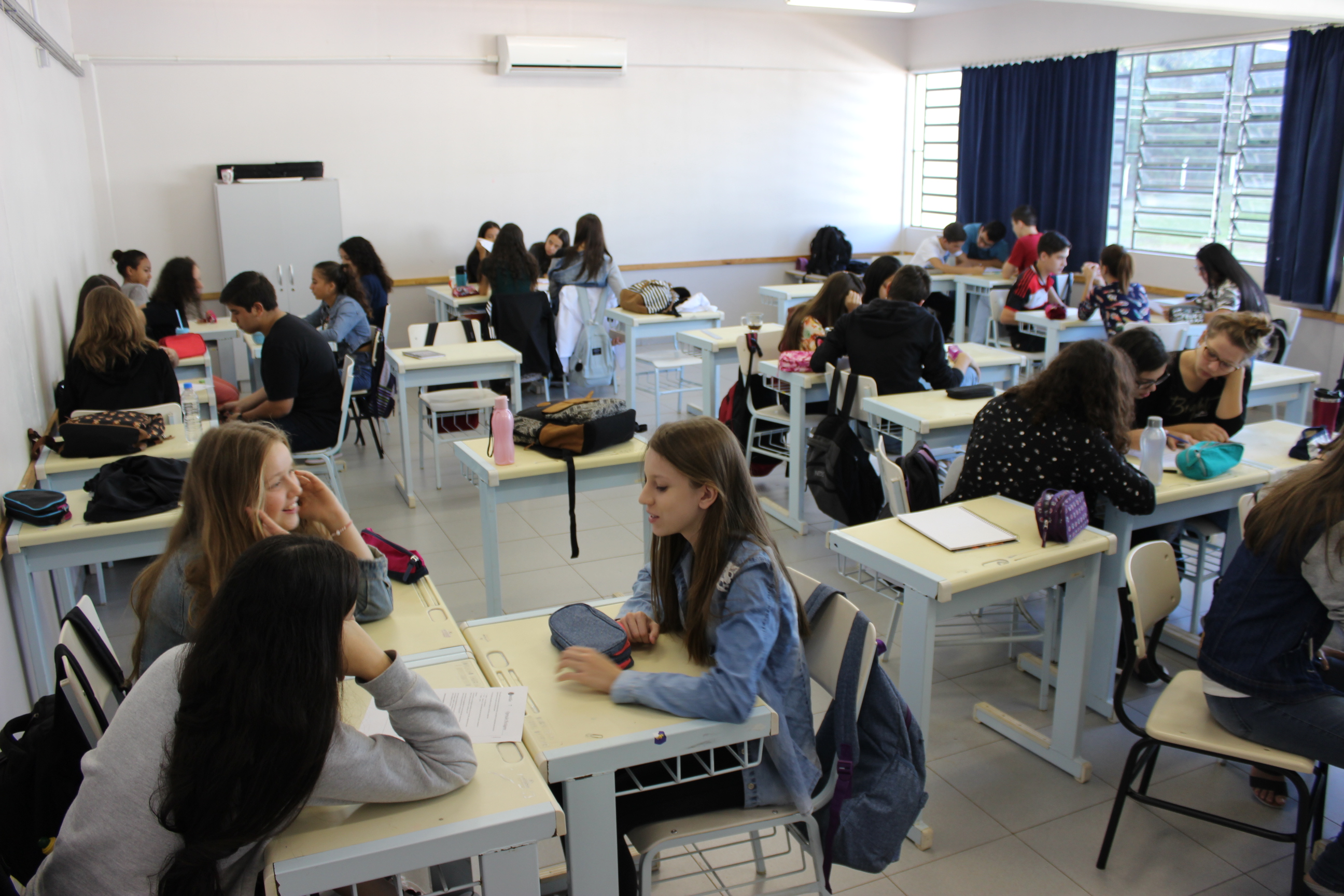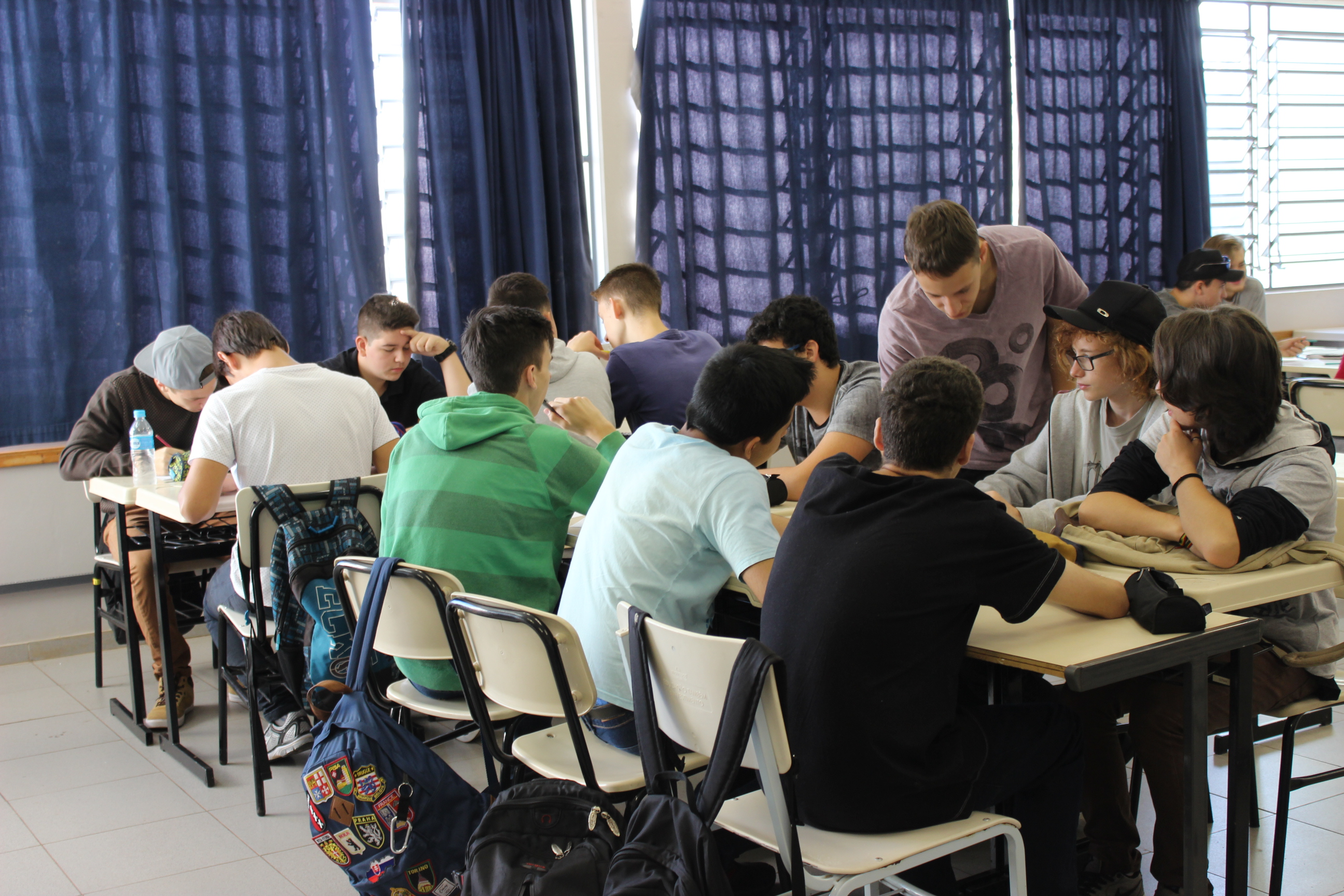 Na sexta-feira, 20/04, todos os alunos dos cursos técnicos integrados ao Ensino Médio do IFFar – Campus Panambi realizaram a prova, que é realizada em equipe. Também é possível consultar cadernos, livros e calculadoras. Outro diferencial da OIMSF é que uma das questões da prova deve ser respondida em Língua Estrangeira (Espanhol, Inglês ou Francês), pois outro objetivo da olimpíada é aproximar a matemática das línguas modernas, de acordo com o professor Renan Gabbi, responsável pela aplicação da prova no Campus.