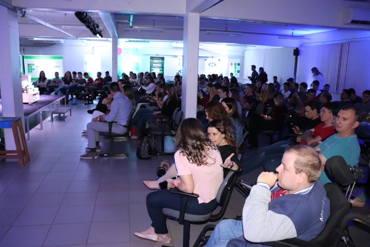 Na quinta-feira (26), aconteceu o 2º Altos Papos sobre Gestão, evento promovido pela Escola de Gestão e Negócios do IFFar - Campus Santa Rosa, abrangendo os cursos bacharelado em Administração, Pós-Graduação em Gestão e Negócios e o Técnico em Administração EaD, juntamente com o Diretório Acadêmico de Administração (DAIF). O evento teve como objetivo proporcionar o contato dos acadêmicos com profissionais da área de Administração, além de aproximar os alunos do mercado de trabalho. Alunos do projeto de Ensino Bandas do IFFar animaram o evento.