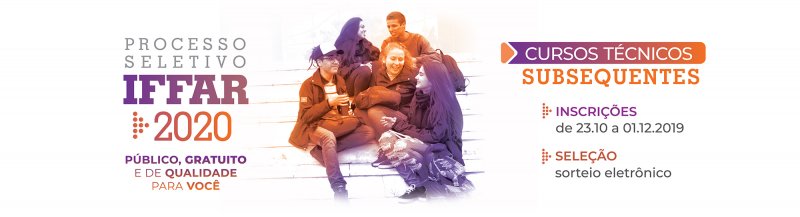 As inscrições para o Processo Seletivo 2020 dos Cursos Técnicos Subsequentes ao Ensino Médio do IFFar vão até 1º de dezembro, e 180 vagas são para cursos na modalidade de Educação a Distância.