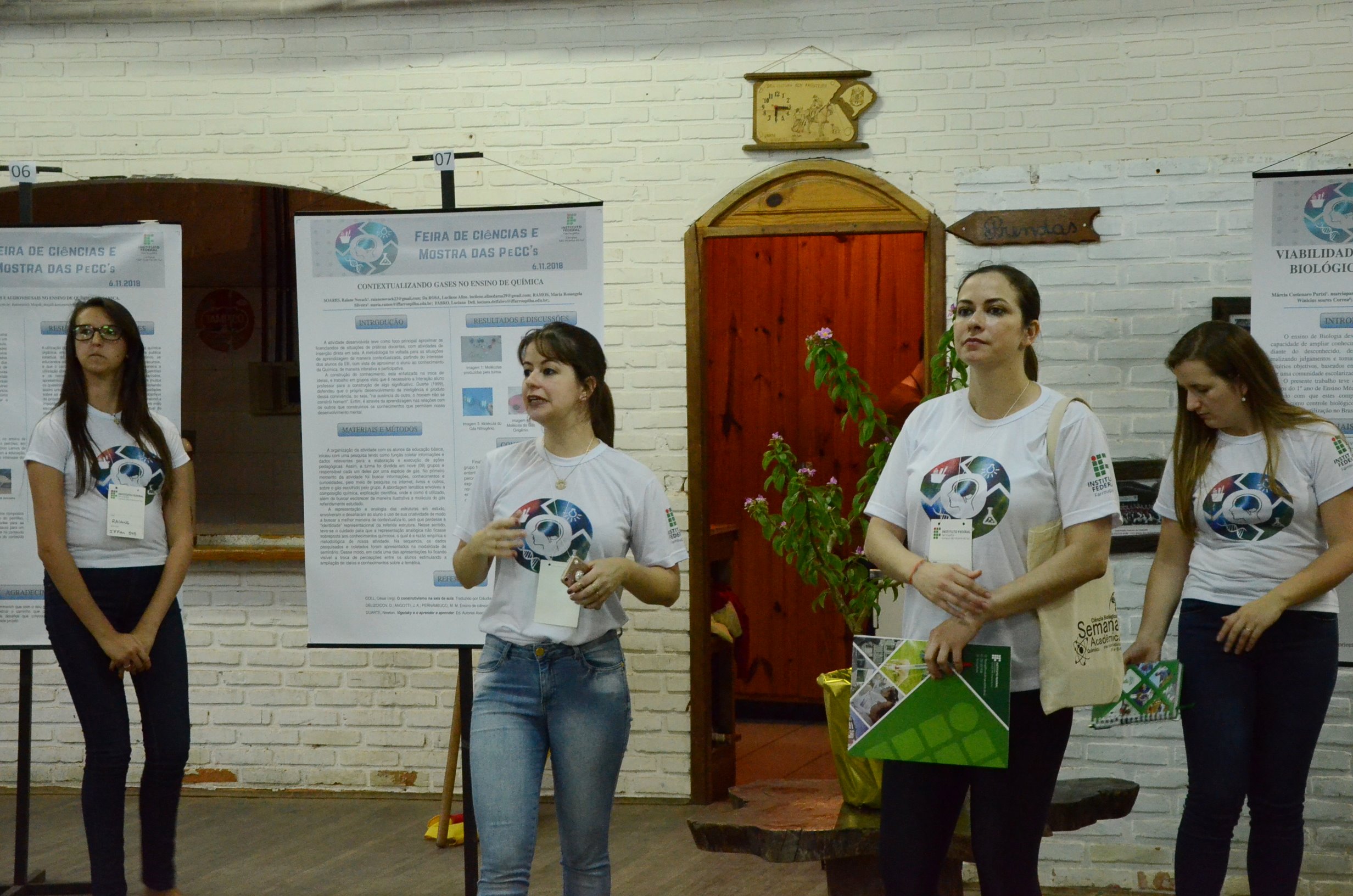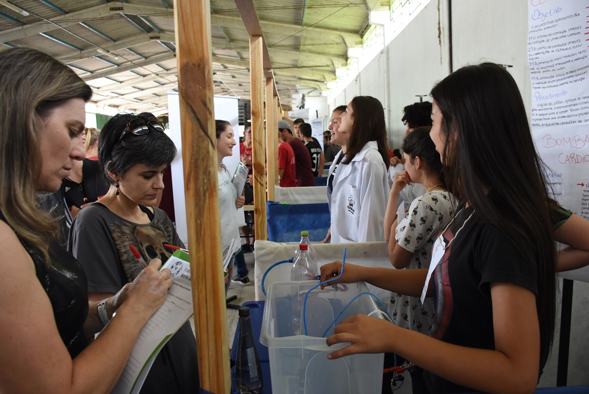 Os alunos realizaram apresentação para uma banca de avaliadores, que, além de professores do campus, era composta por docentes de escolas das cidades de Cacequi e São Vicente do Sul; e por mestrandos e doutorandos do Programa de Pós Graduação em Educação em Ciências: Química da Vida e Saúde da UFSM. Eles levaram em consideração aspectos como, por exemplo: relevância científico-tecnológica; caráter investigatório; contexto socioeconômico e biológico; criatividade; domínio e clareza na explicação; postura e identificação do grupo; além de analisarem se a proposta condizia com o experimento e se contemplava duas disciplinas ou mais.
