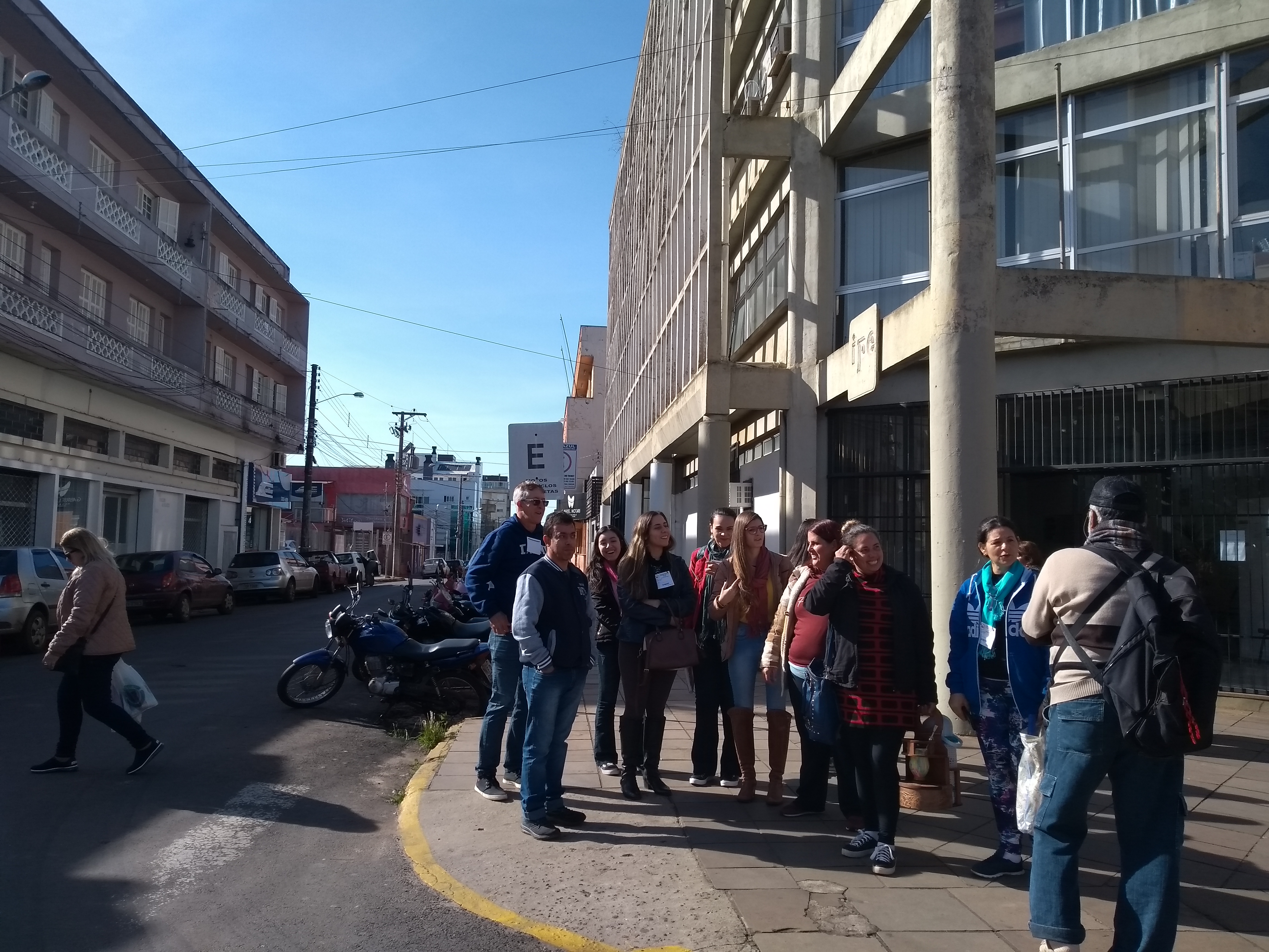 Na terça-feira, 21/11, foi realizada uma caminhada noturna na região central de Panambi visando promover ações de Educação Patrimonial. A ação contou com 25 participantes, dentre alunos, técnicos administrativos, professores do IFFAR e integrantes da comunidade externa. Participaram também representantes de Empresas, do Poder Público e dos Conselhos Municipais. O roteiro percorrido foi oportunidade de vivenciar o espaço urbano de uma forma diferenciada.